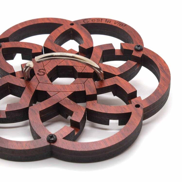 Das C'est la vie basiert auf der euklidischen Konstruktion eines Sechsecks und stellt eine interessante Herausforderung dar. Das Ziel besteht darin, den Ring zu entfernen, indem man ihn durch das Labyrinth der Schlitze in den verschiedenen Holzelementen führt.