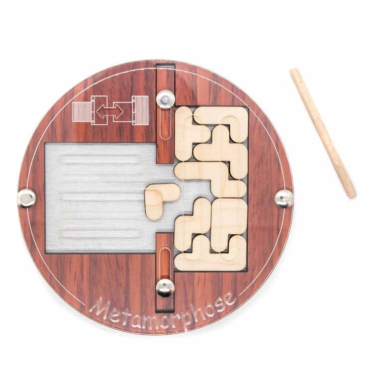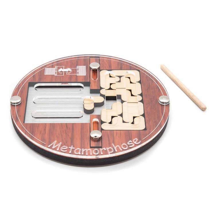 Metamorphose ist ein Schiebe- und Packpuzzle von Jean Claude Constantin. Aufgabe ist es, mit Hilfe des Stabs die Puzzleteile von einem Rechteck ins andere zu bekommen.