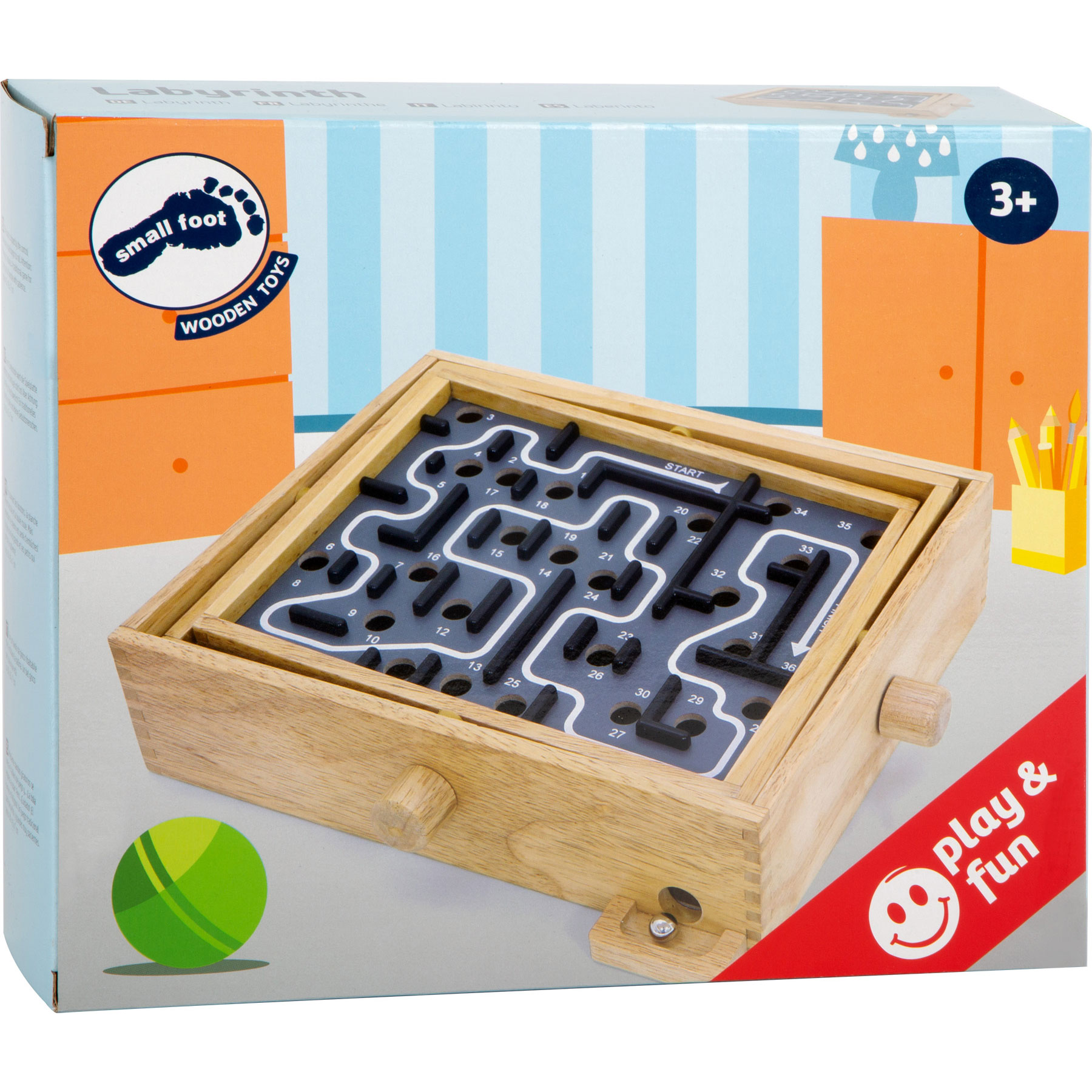 Durch Drehknöpfe wird die Spielplatte gekippt und die Kugel rollt los! Aber Achtung: Der Weg ist beschwerlich! Ein traditionelles Spiel für große und kleine Geduldsmenschen.