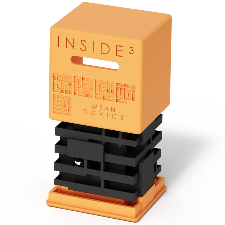 INSIDE³ ist im Prinzip ganz einfach erklärt: Ein 3D-Labyrinth im Dunkeln. Aufgabe ist es, die Kugel aus dem Labyrinth zu befreien und anschließend wieder zurück zum Ausgangspunkt zu bringen. Als Hilfe ist auf dem Würfel eine Labyrinth-Karte aufgezeichnet. Je nach Cube und Level besteht bei einigen die Möglichkeit, den Cube zu öffnen und das Labyrinth anzusehen. Oder sie haben noch eine weitere Kugel, um es schwerer zu machen. Aufgeteilt sind die Cubes in drei Serien und fünf Schwierigkeitslevel.
