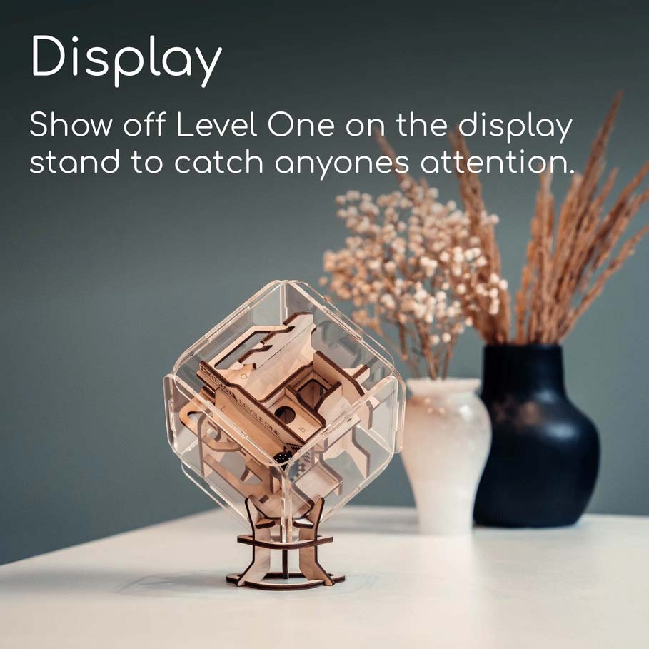 Sobald Sie zusammengebaut sind, ist es Ihr Ziel, die Murmel durch die Kurven und Tunnel des hölzernen Labyrinthwürfels bis zur Ziellinie zu navigieren. Memory ist hier der Name des Spiels. Du musst nachverfolgen, wo du gewesen bist, um deinen Weg zur anderen Seite zu planen.