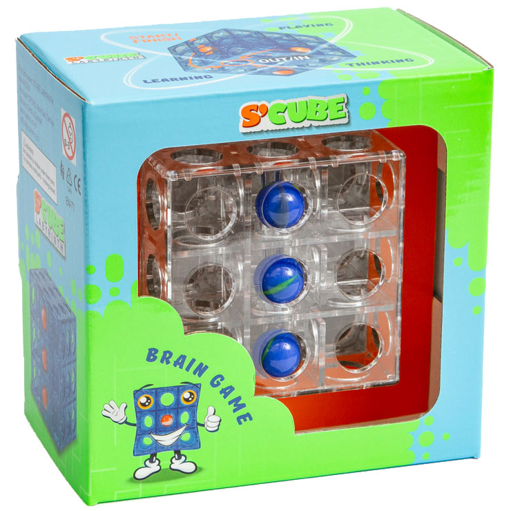 Der weiße S'Cube Labyrinthwürfel für Fortgeschrittene. Aufgabe ist es, die Kugeln durch die unterschiedliche großen Löcher zu führen und so das Labyrinth zu besiegen. Der Kurs für alle 3 Kugeln durch das Labyrinth ist nicht einfach zu finden. Die Lösung erfordert hohe Aufmerksamkeit und gutes räumliches Denken.
