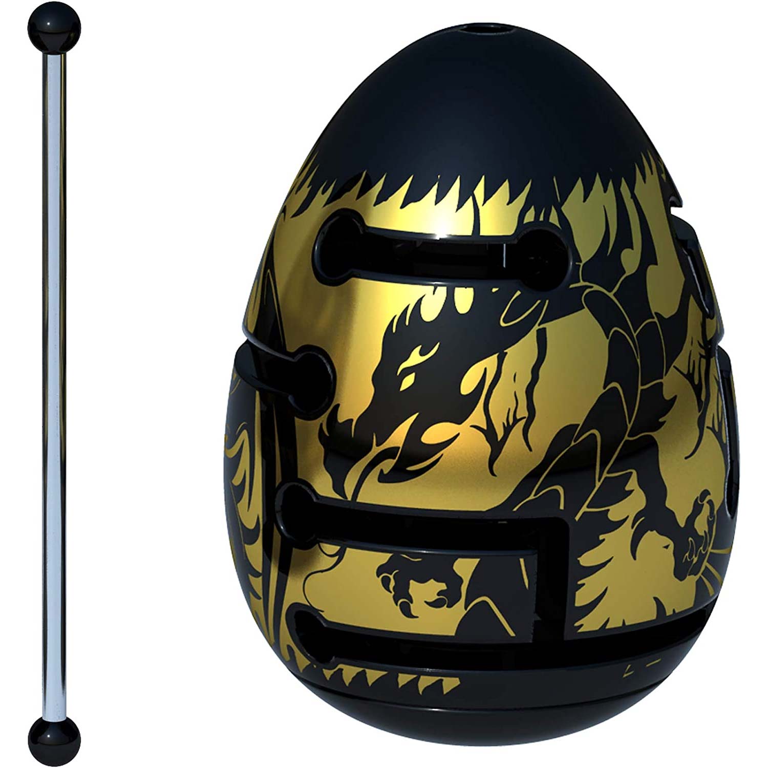Smart Egg Advanced Black Dragon mit 2 Ebenen und 80 Lösungszügen ist das schwerste Smart Egg auf dem Markt. Die Smart Eggs aus der Advanced Serie sind größer als die Starterserie. Das anspruchvolle Rätselspiel Smart Egg 2-Layer Black Dragon ist die dritte von drei fortgeschrittenen Varianten der 3D-Puzzle-Reihe Smart Egg, bei der durch das überlegte Bewegen eines Stabs ein Labyrinth im Ei gelöst werden muss. Das neue Konzept des Labyrinths im Labyrinth stellt selbst geübte Rätselenthusiasten vor neue Herausforderungen: Manchmal muss das innere Labyrinth bewegt werden, um neue Wege für den Stab zu schaffen.