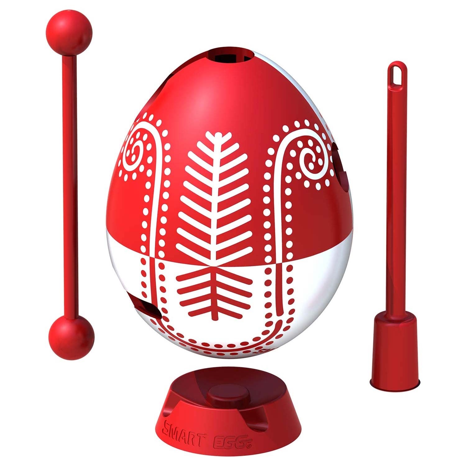 Smart Egg Oster-Collection Rot in einer leichten Schwierigkeitsstufe: Die besondere Osterüberraschung mit Knobelfaktor. Die Smart Eggs haben eine Höhe von 6,4 cm und einen Durchmesser von 5 cm. Aufgabe ist es, den Stab von oben in das Smart Egg hinein zu stecken und ihn dann durch die Pfade und Löcher des Labyrinths zu führen. Gelöst ist das Smart Egg, wenn der Stab unten aus dem Ei herausgeführt wird.