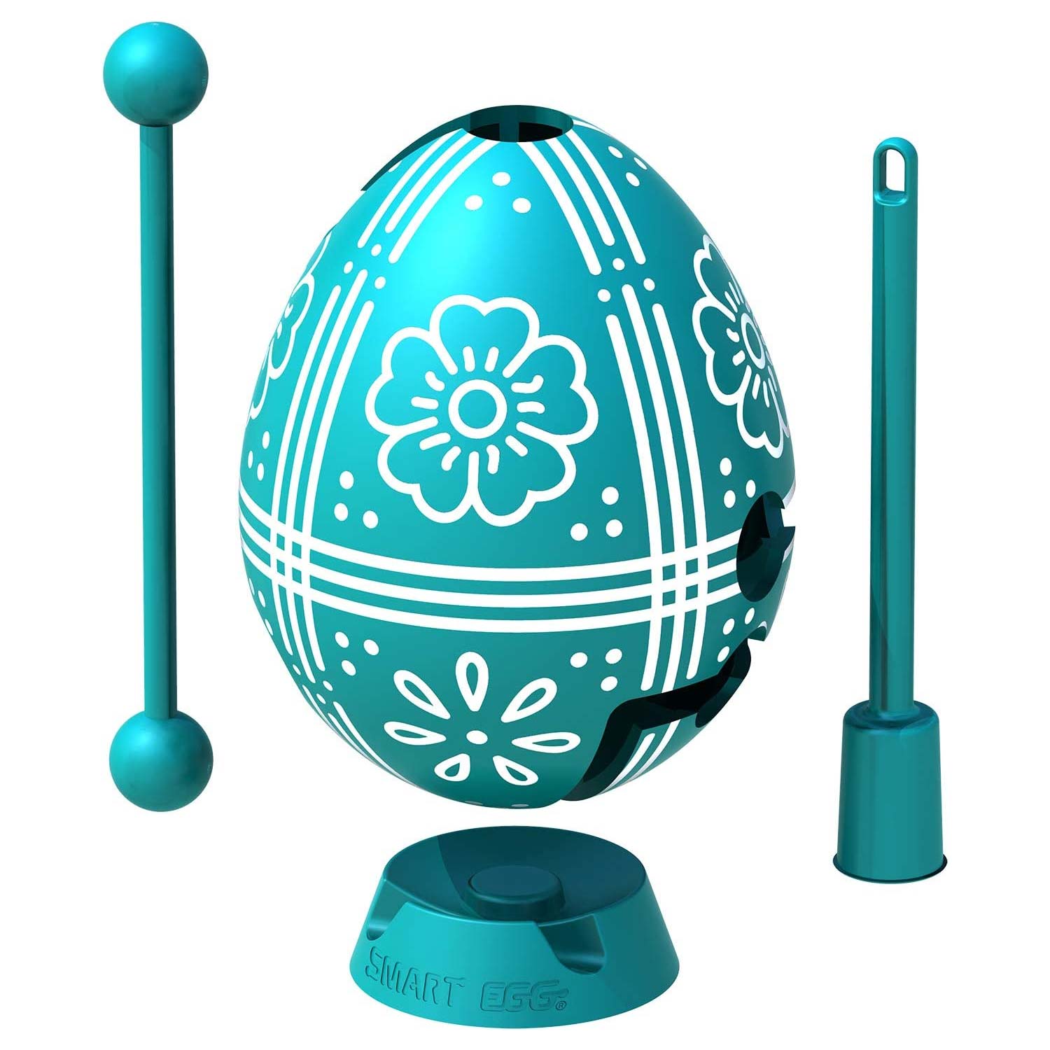 Smart Egg Oster-Collection Türkis in einer leichten Schwierigkeitsstufe: Die besondere Osterüberraschung mit Knobelfaktor. Die Smart Eggs haben eine Höhe von 6,4 cm und einen Durchmesser von 5 cm. Aufgabe ist es, den Stab von oben in das Smart Egg hinein zu stecken und ihn dann durch die Pfade und Löcher des Labyrinths zu führen. Gelöst ist das Smart Egg, wenn der Stab unten aus dem Ei herausgeführt wird.