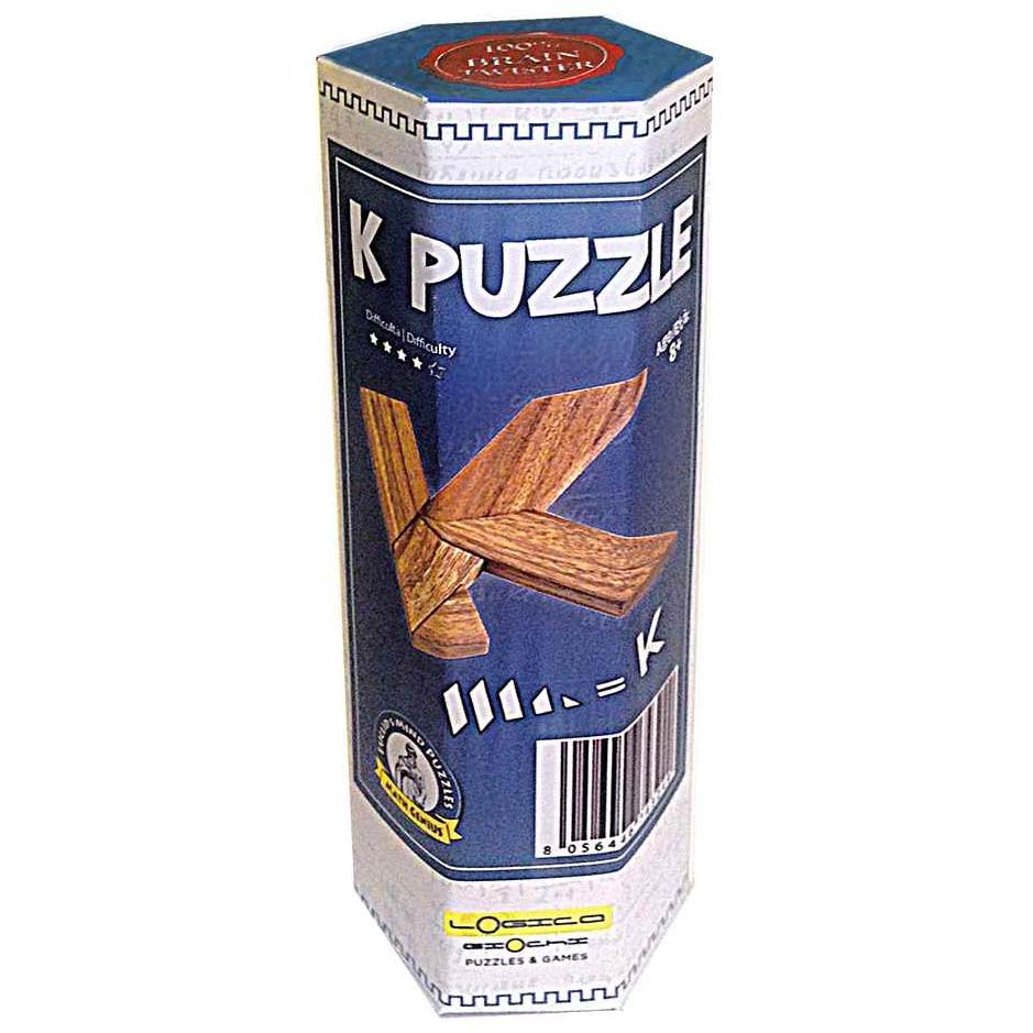 Das K Puzzle besteht aus 5 Puzzleteilen. Aufgabe ist es, daraus ein K zu bilden. Schwerer als man denkt.