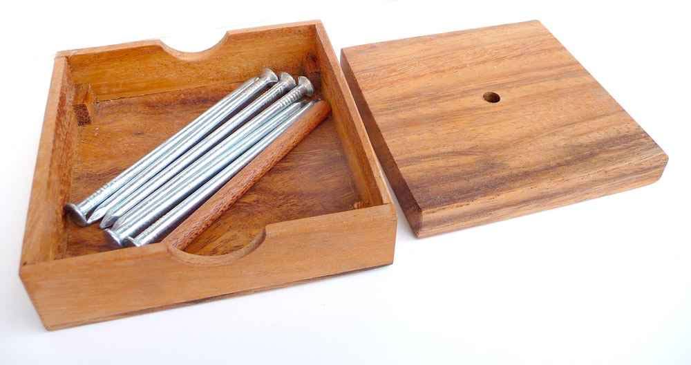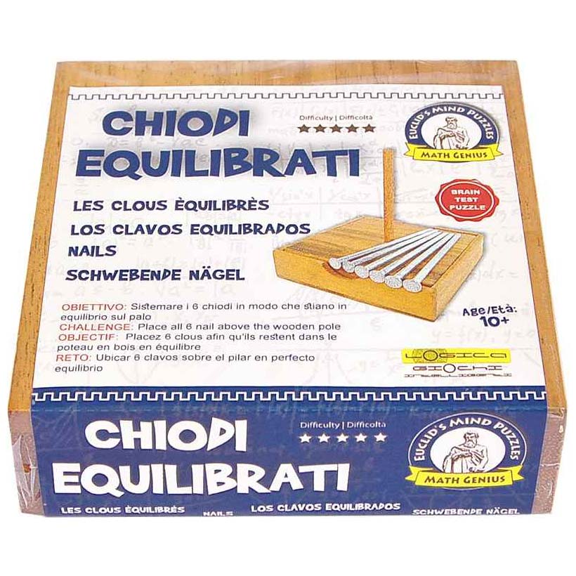 Ausgewogene Nägel besteht aus 6 Nägeln, die man auf der Spitze des Stabes so ausbalancieren muss, dass sie von alleine halten.