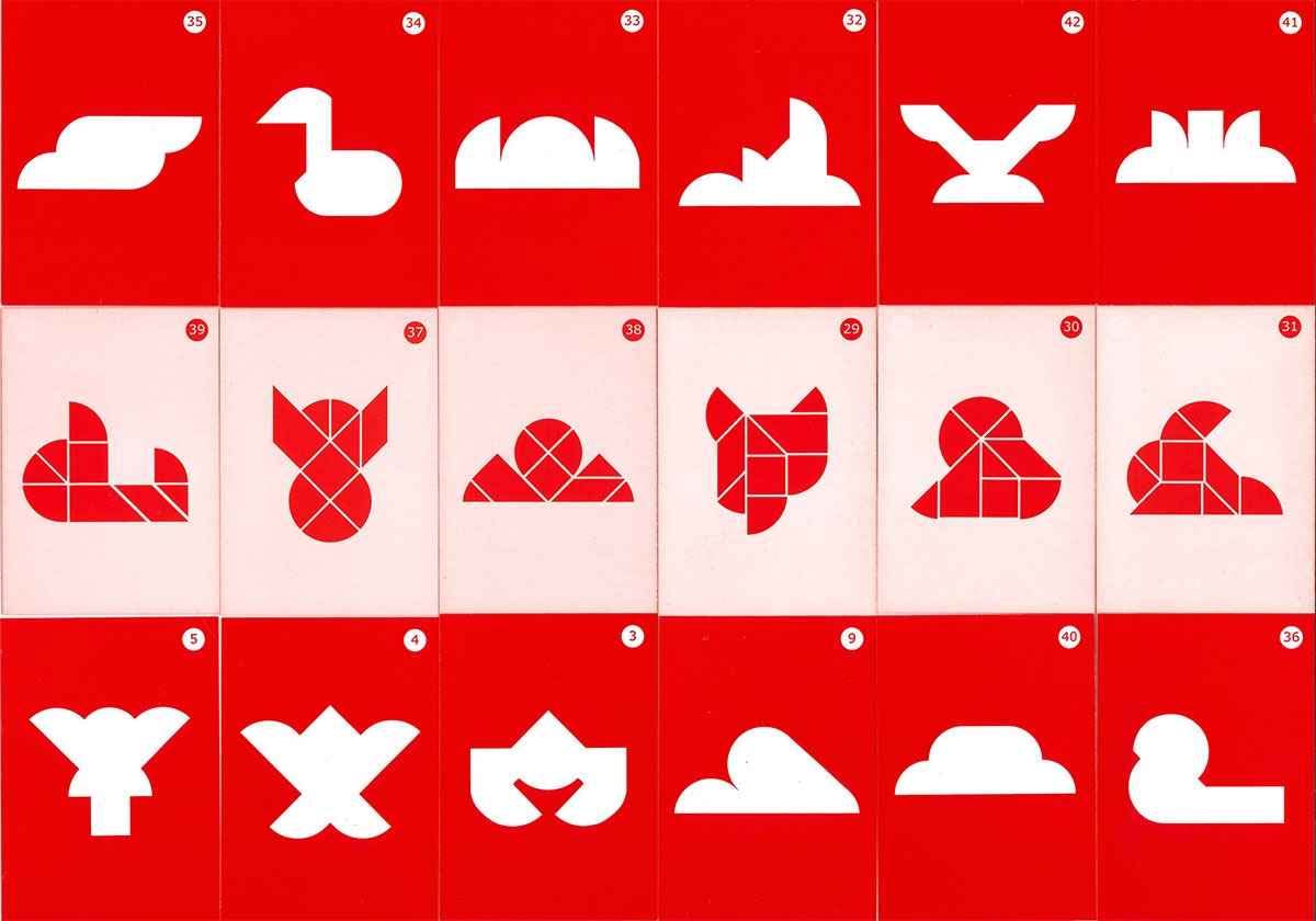 Das Double Heart Tangram ist ein Legespiel für 2 Spieler: Wer formt als Erster das Herz und weitere 42 Figuren? In der Box befinden sich 2 Sets des Tangram-Herzens und 42 Karten mit Figuren zum Nachbauen. Wem es gelingt, die vorgegebene Figur zu bilden, gewinnt. Lösungen finden Sie auf der Rückseite der Karten.