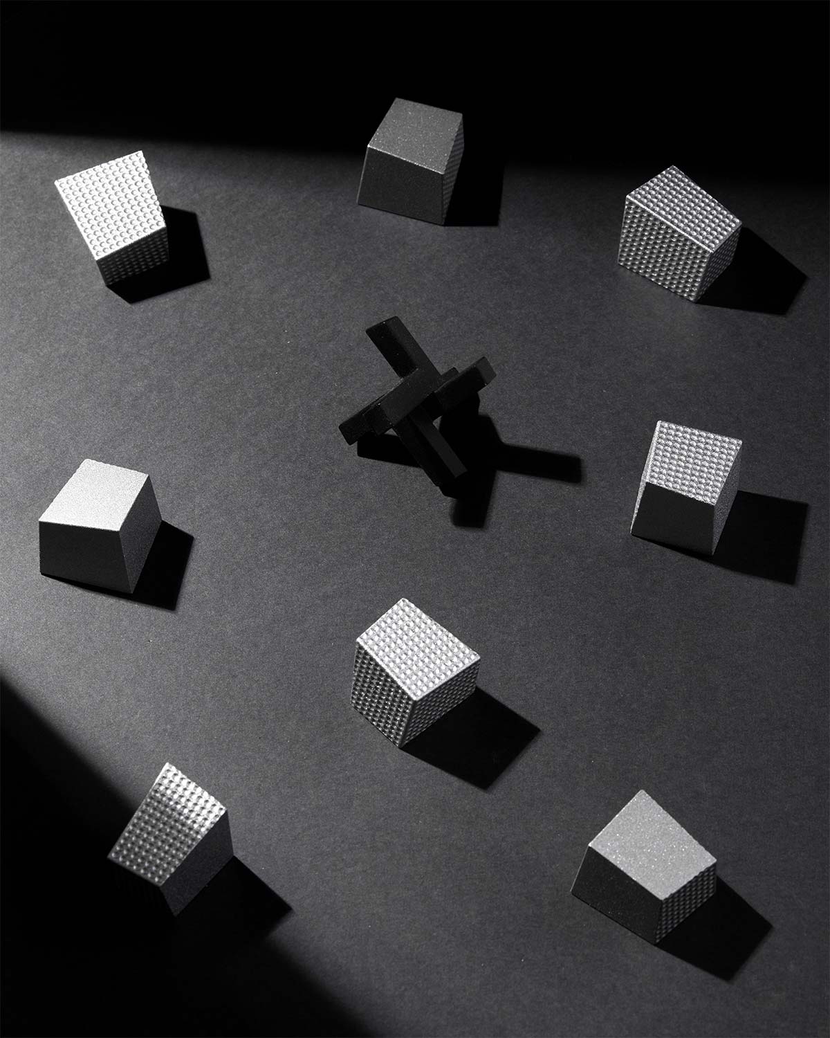 - 8 Aluminium-Quader mit Emory-Finish und Grübchenstruktur