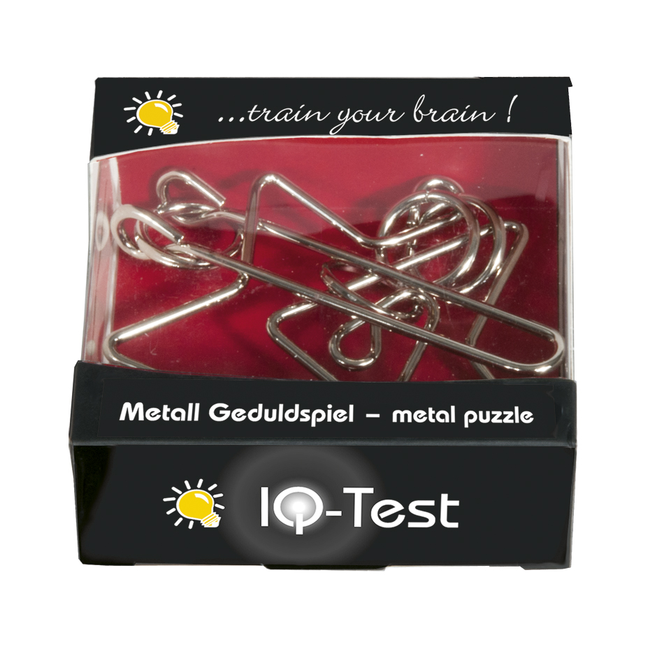 Fridolin IQ Test. Geduldspiel Sternaus Metall. Ziel ist es, ein Teil aus dem Puzzle zu entfernen.