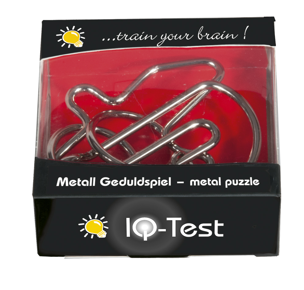Fridolin IQ Test. Geduldspiel Adler aus Metall. Ziel ist es, ein Teil aus dem Puzzle zu entfernen.