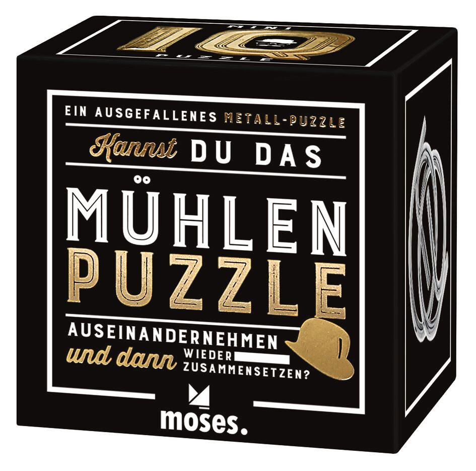 Mini IQ Puzzle Mühlenpuzzle: Endlich gibt es wieder Futter für die Gehirnwindungen! Die Professor Puzzle Mini IQ Puzzle haben es in sich wer schafft es, die vier abwechslungsreichen Knobeleien zu lösen? Ob Mühle, Zange, Spirale oder Klammer: Jedes dieser formschön verpackten Geduldspiele braucht seinen ganz eigenen Dreh für die Lösung. Nur wahre Tüftler schaffen es, das verzwickte Metall-Puzzle auseinanderzunehmen und dann wieder zusammenzusetzen. Verpackt in einer handlichen Schachtel mit edler Metallic-Folienveredelung wird das Mini IQ Puzzle zu einem perfekten Mitbringsel.