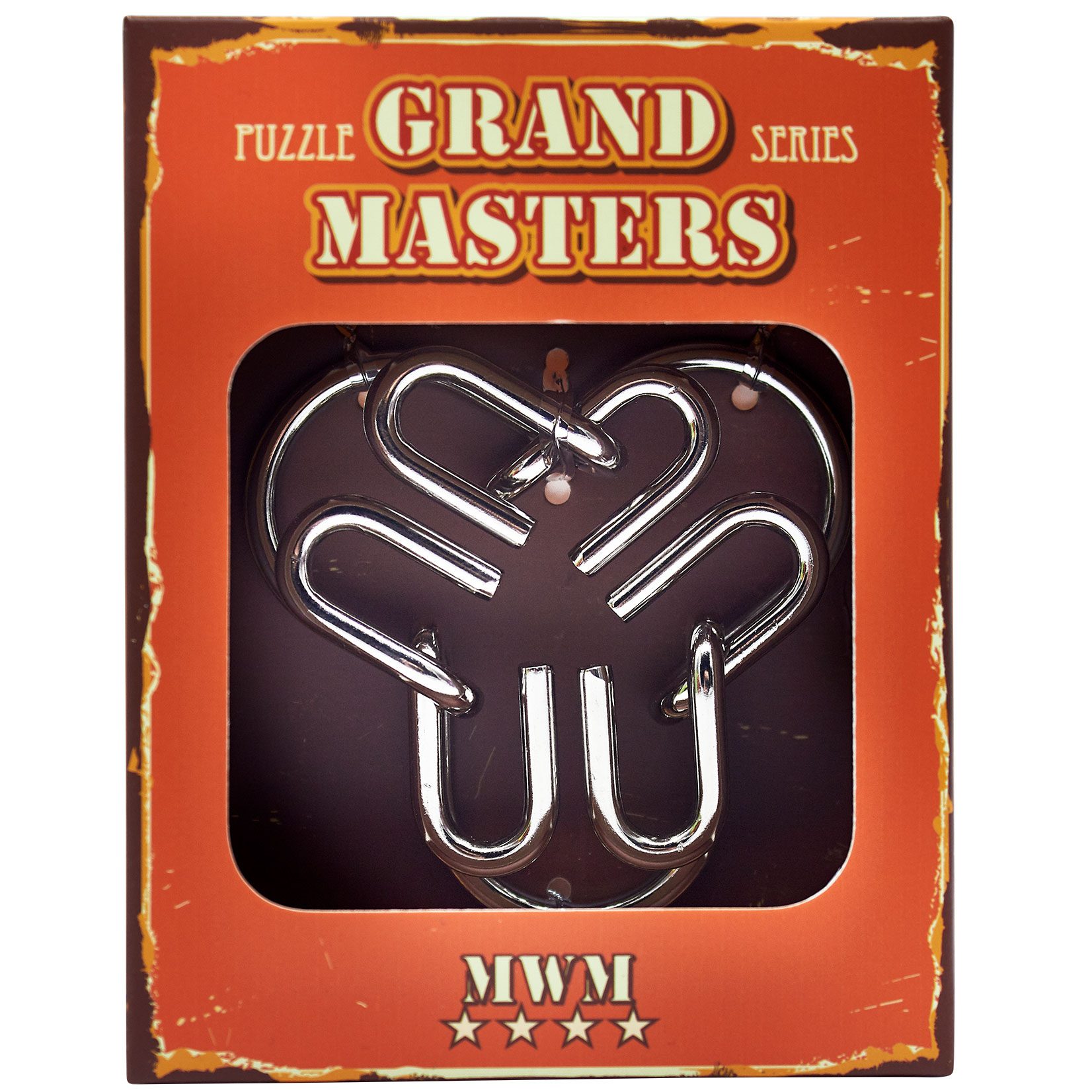 Das Grand Master MWM Puzzle von Eureka. Die Grand Master Puzzle sind extra schwierige Metallpuzzles in Geschenkkarton. Insgesamt gibt es in der Reihe sechs verschiedene Puzzle. Aufgabe ist es, die Teile zu trennen und wieder zusammen zu setzen.