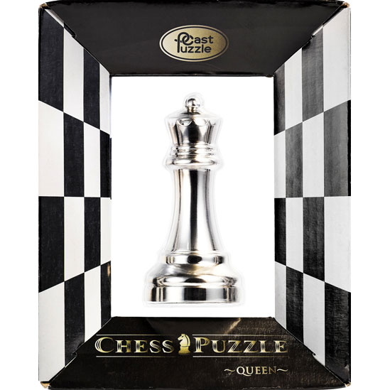 Das Cast Chess Puzzle "Queen" (Dame) in Silber ist Teil der sechsteiligen Chess-Reihe von Hanayama. Jede Schachfigur enthält im Inneren eine Münze. Aufgabe ist es, die Münze heraus zu bekommen. Zu Lösen ist ein einzigartiges, geheimes System, das sich bei jeder der sechs Schachfiguren unterscheidet.