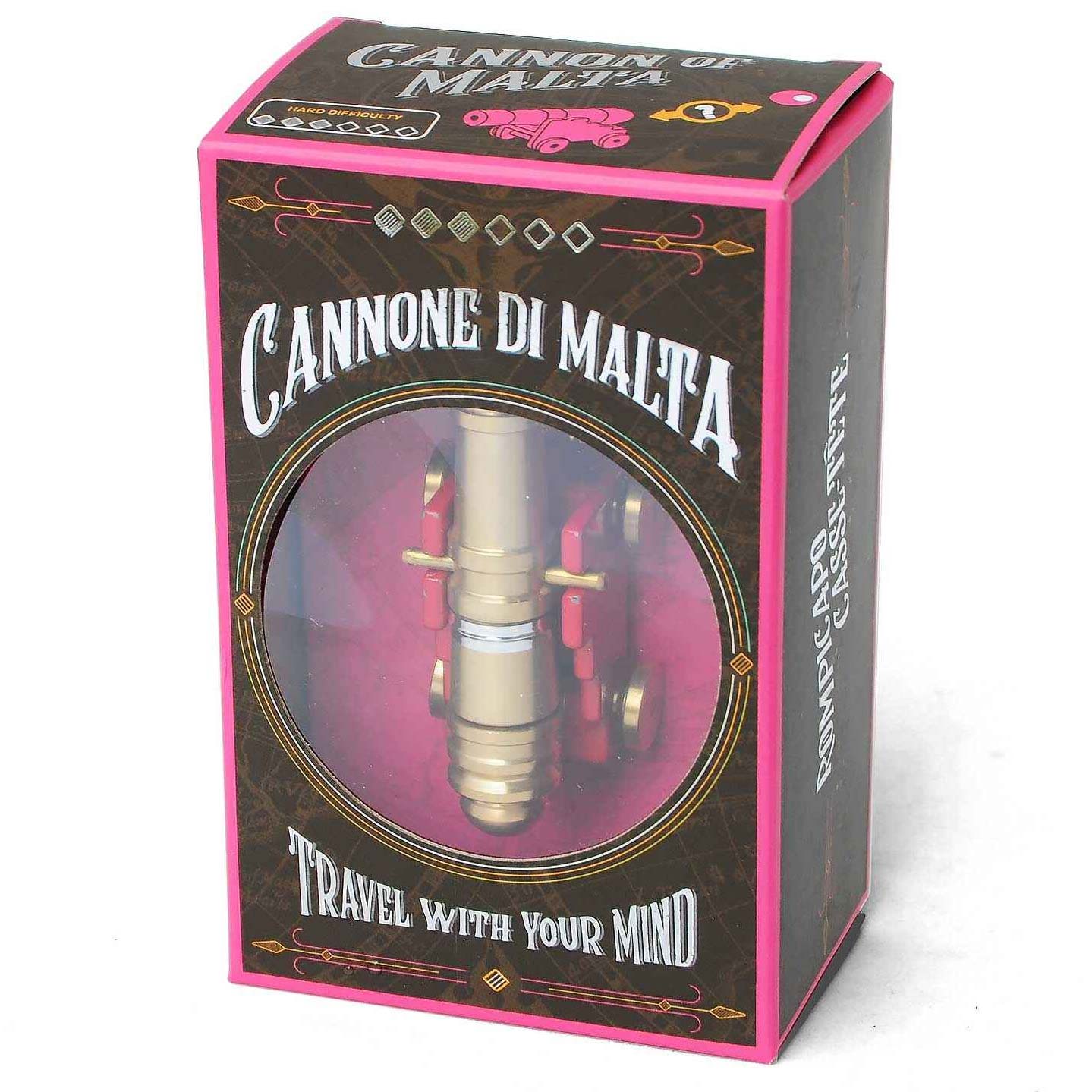Die Kanone von Malta ist ein Metallpuzzle aus der Serie Travel with your Mind. Aufgabe ist es, die Kanonenkugel von der Messingkanone zu befreien.