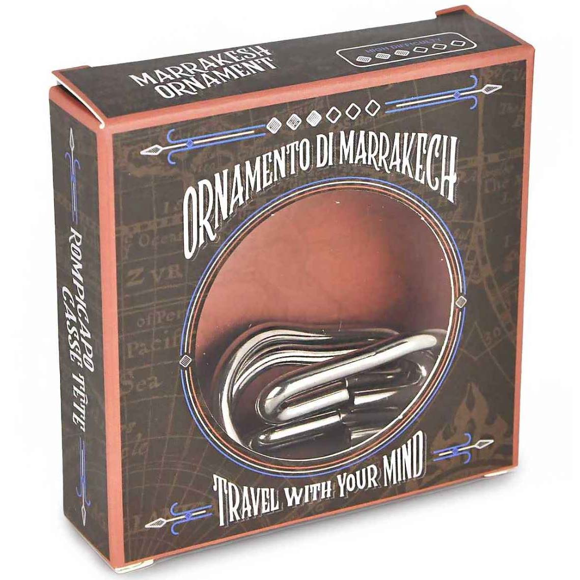 Das Marakkech Ornament ist ein Metallpuzzle aus der Serie Travel with your Mind. Aufgabe ist es, die drei Teile zu trennen und anschließend wieder zusammenzusetzen.