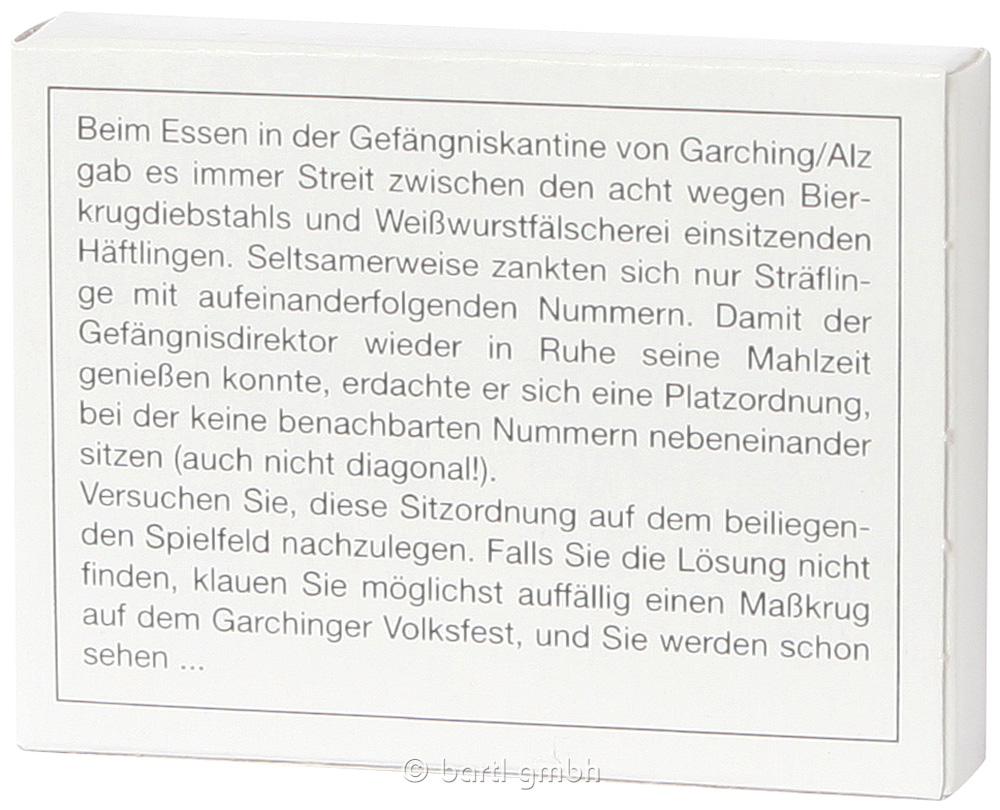 In einer Gefängniskantine streiten sich die Insassen mit nebeneinander liegenden Nummern. Ersinnen Sie eine Platzordnung, bei der benachbarten Nummern nicht zusammenkommen.