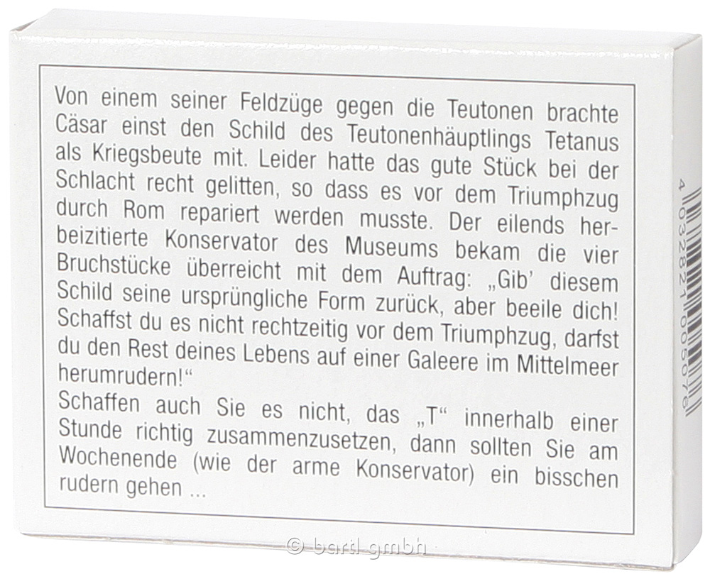 Cäsar erbeutete beim Teutonenfeldzug ein Schild in T-Form. Doch es zerbrach in vier Teile. Reparieren Sie es.
