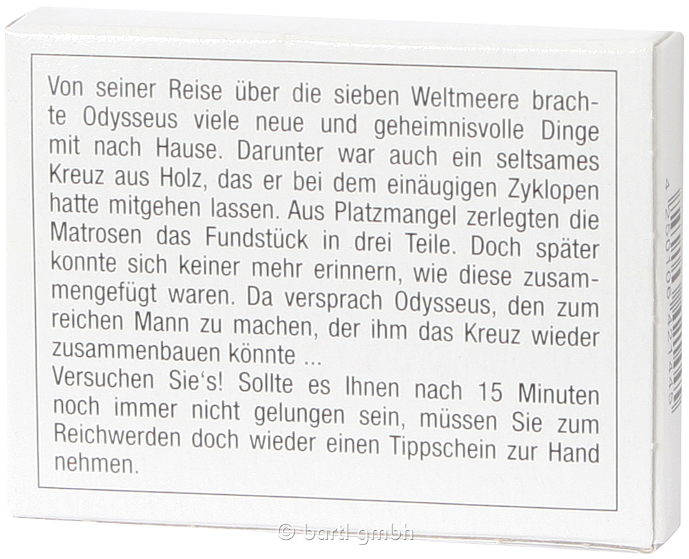 Odysseus kann sein dreiteiliges, rätselhaftes Kreuz nicht mehr zusammenbauen. Wer hilft ihm dabei?