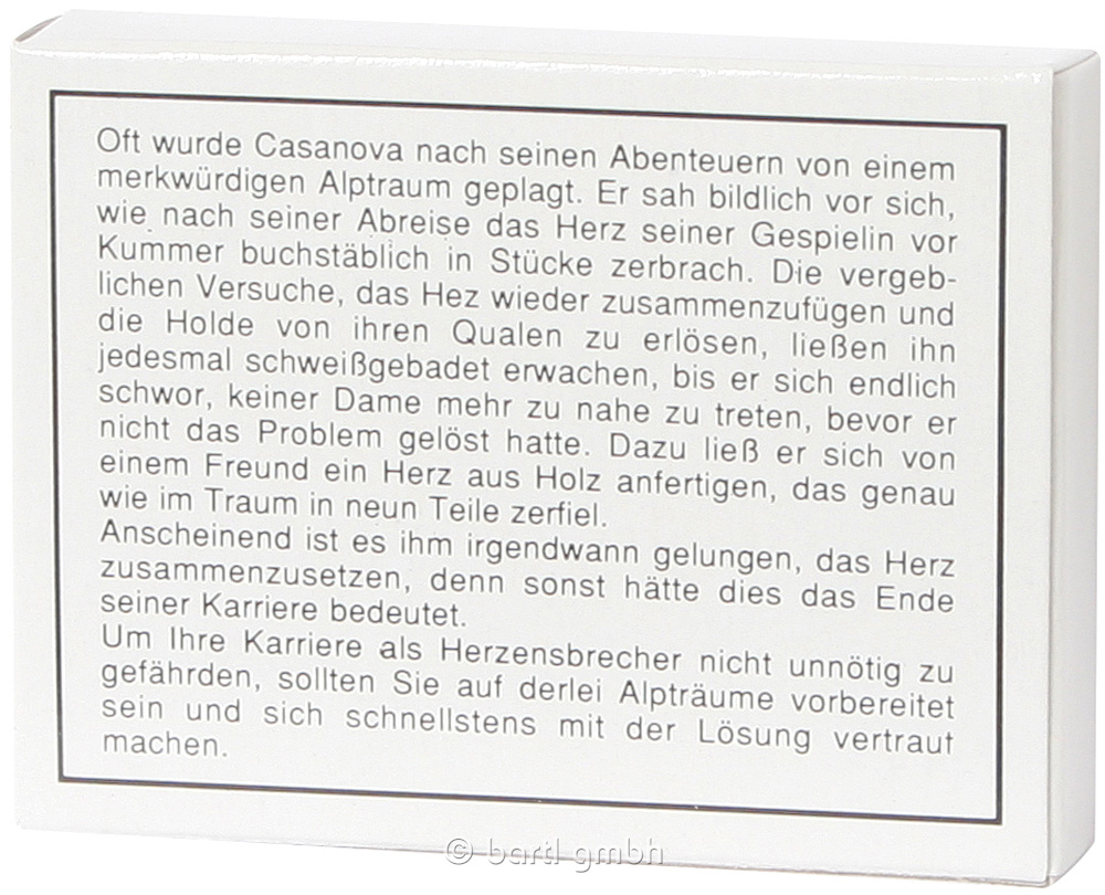 Casanovas neunteiliges Lieblingspuzzle ist Herausforderung für jeden Herzensbrecher: Das Herz seiner Gespielinnen zu flicken, wenn es mal bricht!