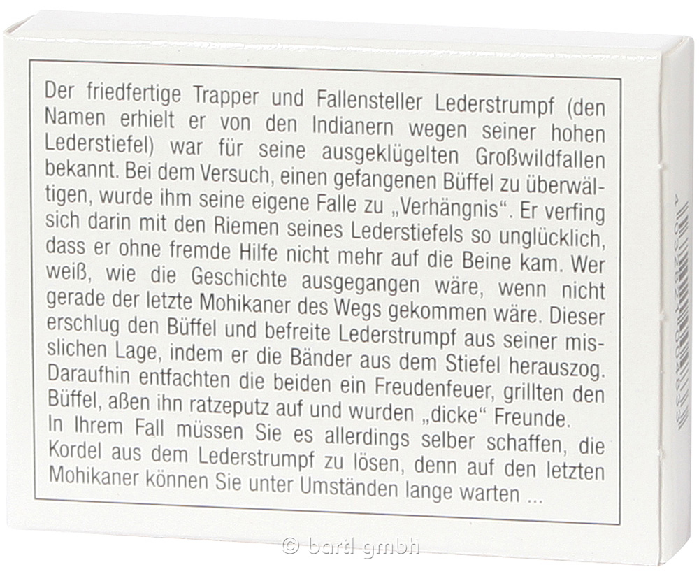 Ein Trapper geriet mit seinen Stiefeln in eine Büffelfalle und verfing sich darin. Erst ein Mohikaner konnte ihn befreien. Hätten Sie es auch gekonnt?