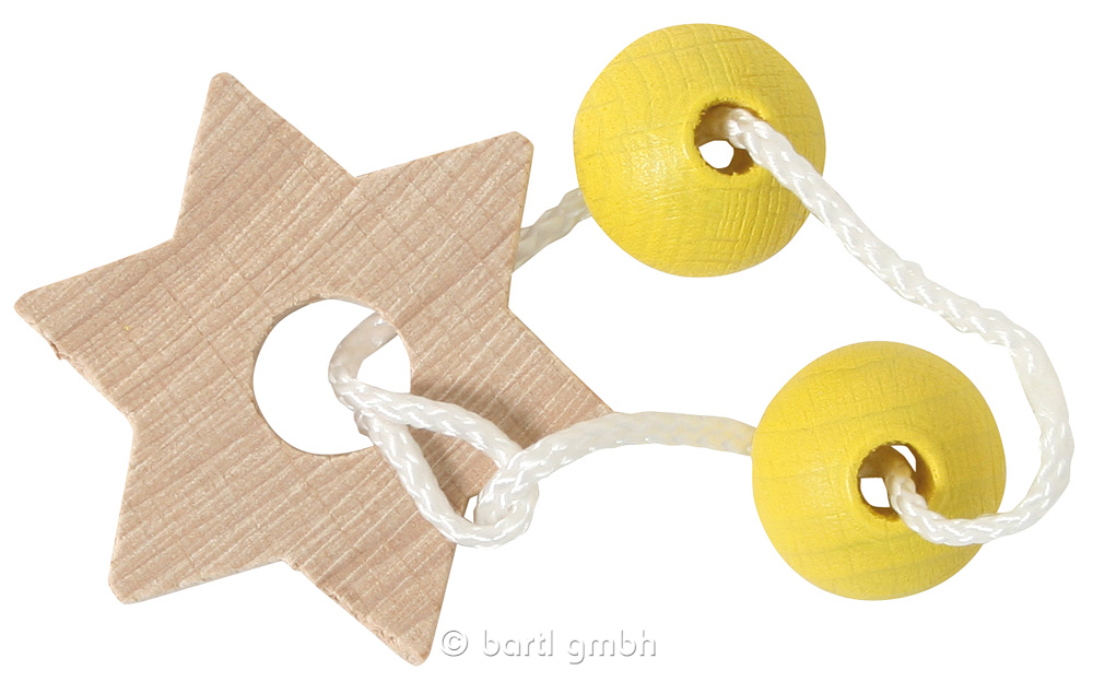Damit Mond und Stern gemeinsam am Himmel stehen können, müssen Sie die beiden Mondhälften richtig rum auffädeln. Aber nicht von der Schnur nehmen!