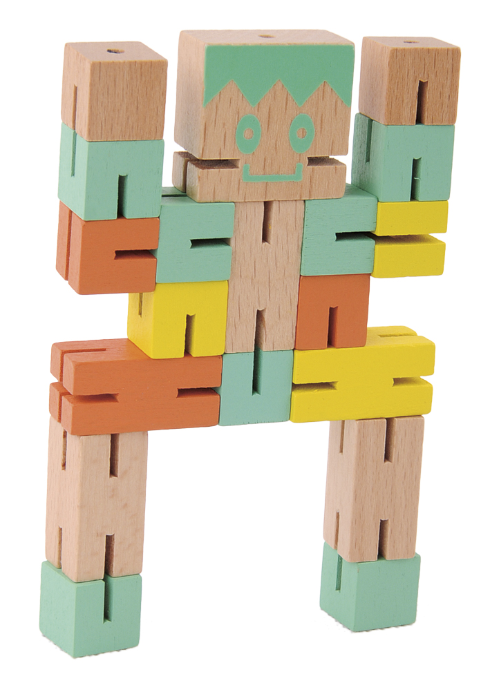 Mit dem bunten und schwer zu lösenden Puzzle Boy in grün, orange und gelb gilt es, eine Figur bzw. einen Würfel zusammen zu stellen.