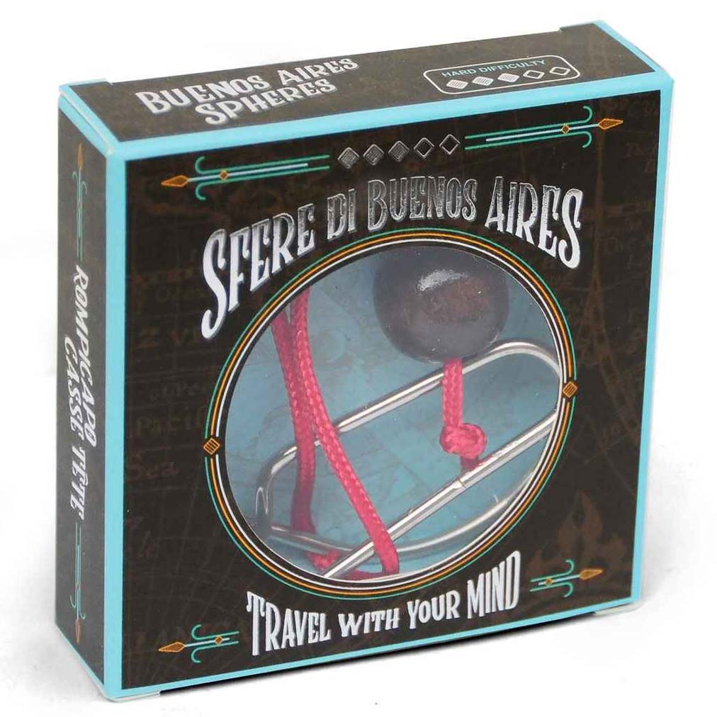 Die Buenos Aires Kugeln ist ein Seilpuzzle aus der Serie Travel with your Mind. Aufgabe ist es, die Schnur mit den Kugeln vom Ring zu trennen und anschließend wieder zusammenzusetzen.