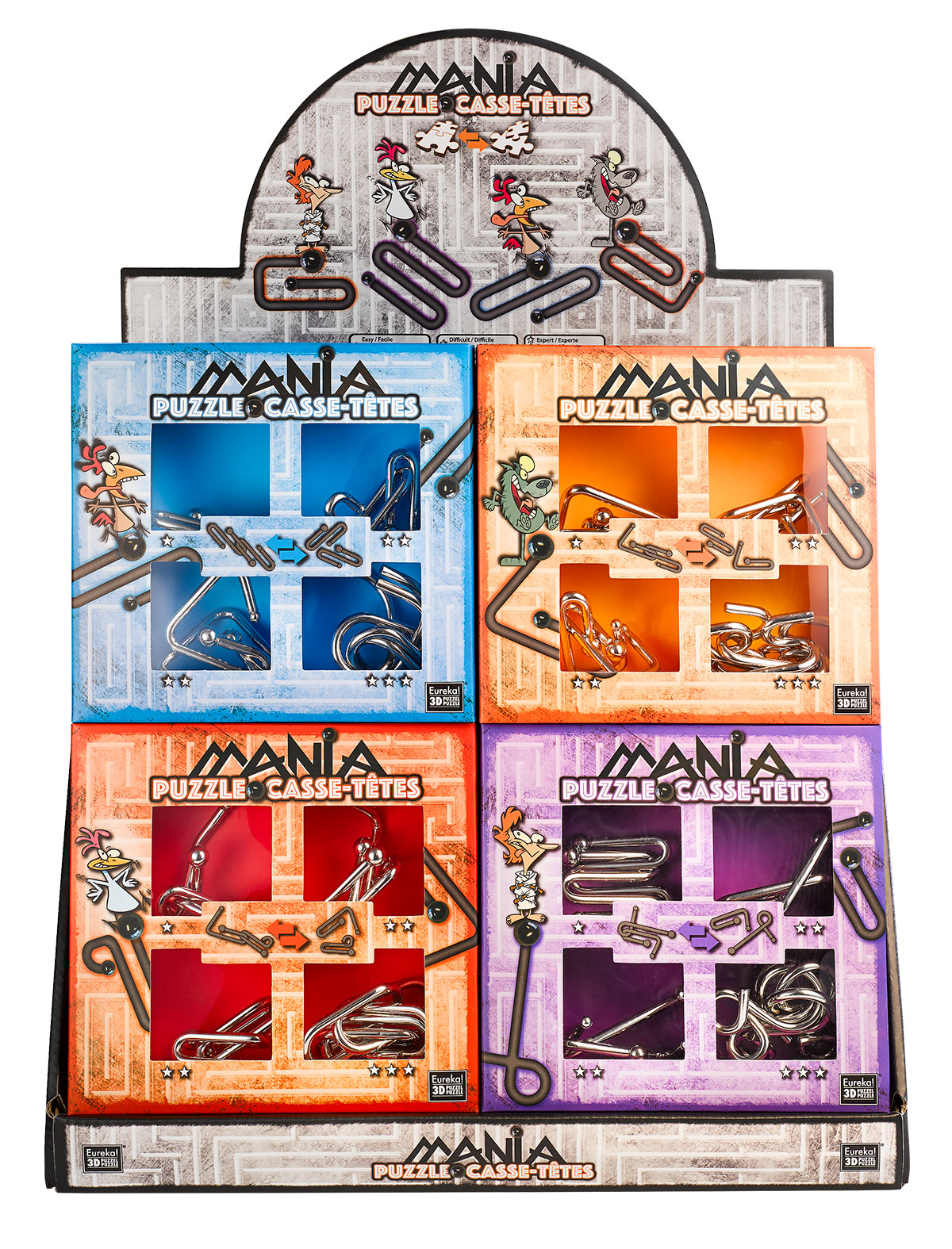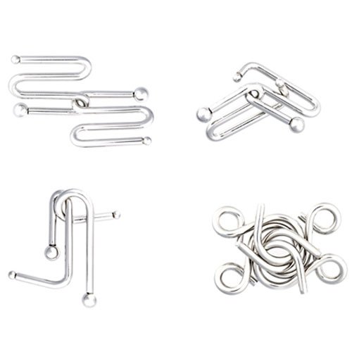 Das Puzzle Mania Set "Insane" besteht aus vier Metallpuzzle mit unterschiedlichem Schierigkeitsgrad: