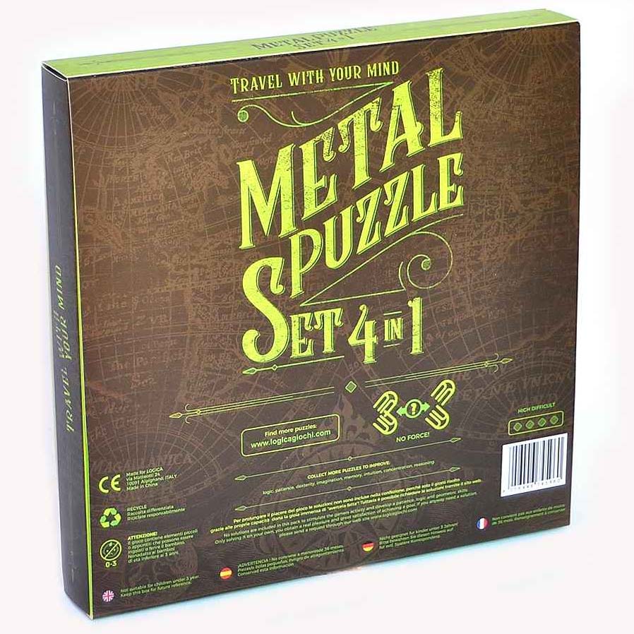 Das Set 4 in 1 Metallpuzzle besteht aus 4 Metallpuzzle in verschiedenen Schwierigkeitsstufen. Aufgabe der einzelnen Puzzle ist es, die Puzzleteile zu trennen und anschließend wieder zusammenzusetzen.
