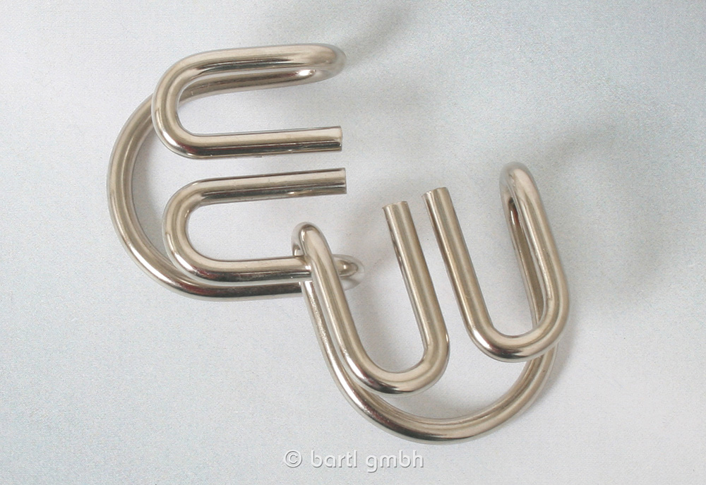Sechs extra-knifflige, kleine Drahtpuzzles in verschiedenen Schwierigkeitsstufen im Set.