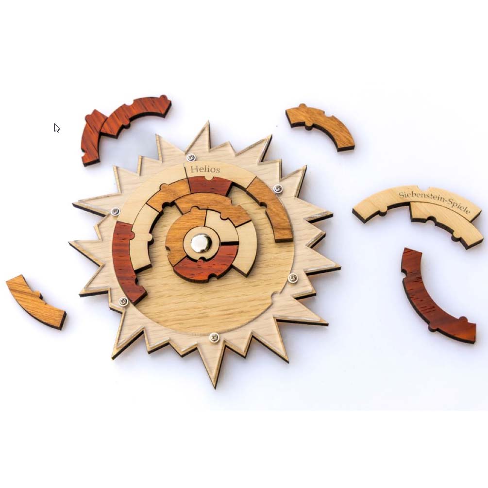 Helios ist ein Legepuzzle von Siebenstein-Spiele. Aufgabe des schweren Puzzles ist es, die Puzzleteile wieder in die Form zu bekommen.