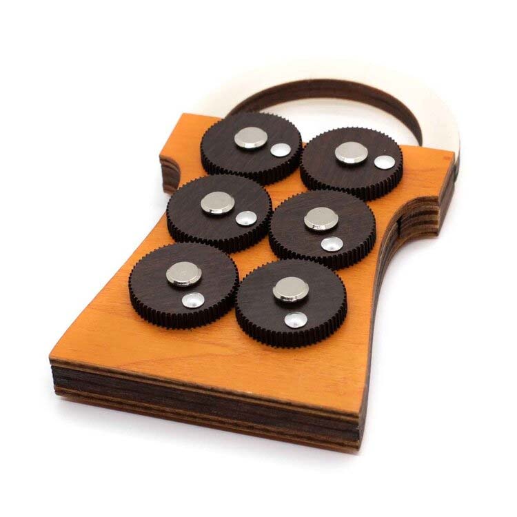 Das Kassenschloss ist mit sechs Drehknöpfen ausgestattet, die durch ihre Zahnräder miteinander in Kontakt stehen. Das Schloß läßt sich öffnen, wenn die Drehknöpfe auf die korrekte Weise gedreht wurden.