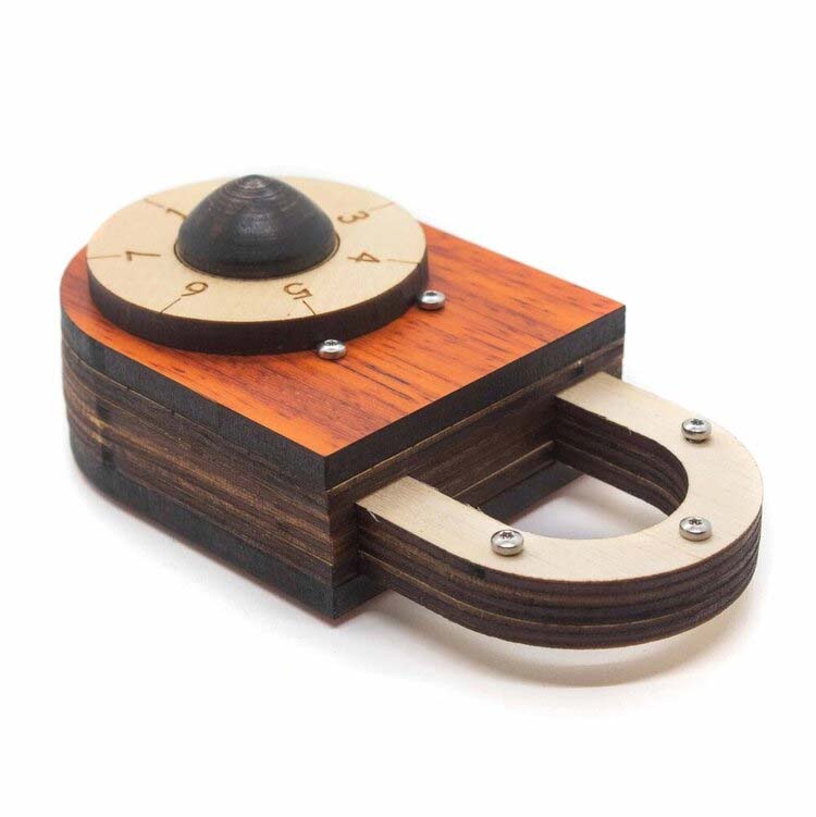 Das Zahlenschloss von Jean Claude Constantin ist ein Trickschloss komplett aus Holz. Auf der Vorderseite befindet sich eine Drehscheibe mit Zahlen, aber eine Kombination haben Sie nicht. Wie geht das Schloss auf?
