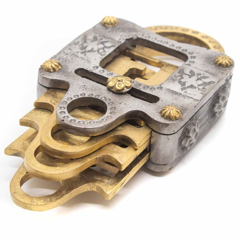 Für das Voidlock Metall wird kein Schlüssel benötigt, um es zu öffnen. Sie müssen die Schiebeelemente verschieben, um Schritt für Schritt der Lösung näher zu kommen. Es sind über 300 Schritte nötig, um das Schloss zu lösen.