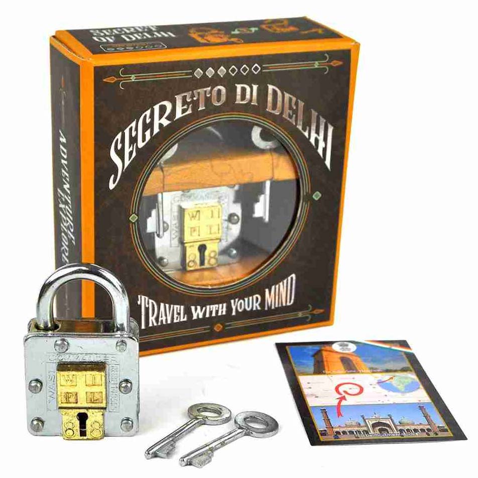Das Geheimnis von Dehli aus der Travel Collection ist ein Trickschloss, dass es zu öffnen gilt. Das Schloss kommt zwar mit zwei Schlüsseln, kann aber nicht auf dem herkömmlichen Wege geöffnet werden. Finden Sie das Geheimnis?