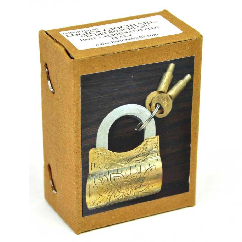 Das Flower Lock ist ein in Indien hergestelltes Trickschloss aus Metall. Es ist mit Blumen verziert, woher das Schloss seinen Namen hat. Aufgabe: Öffne das Schloss.