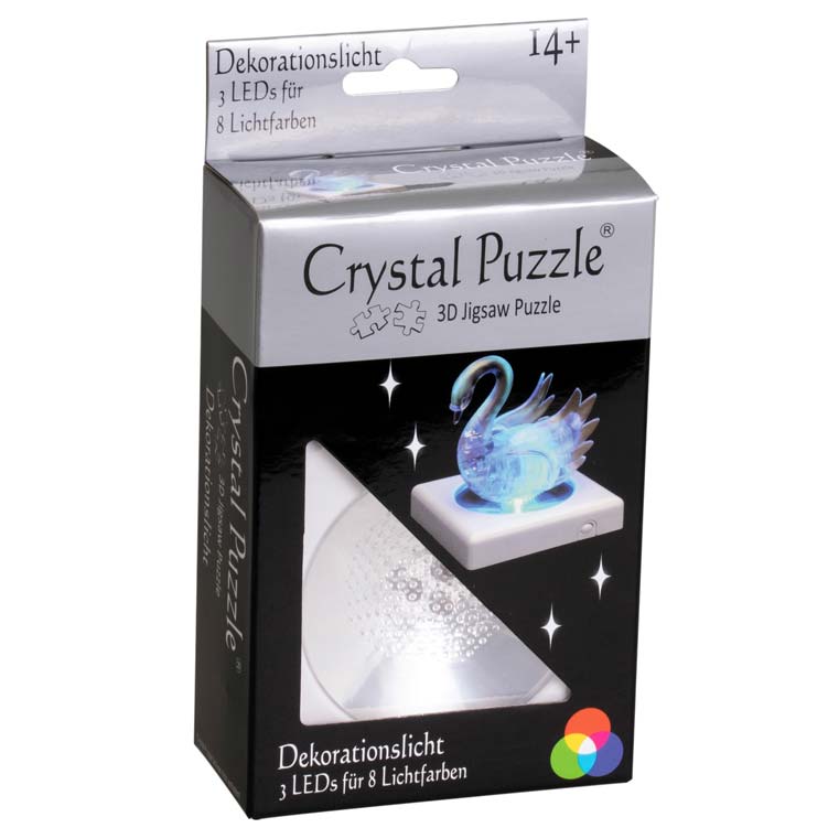 Dieses LED- Dekorationslicht setzt ihre fertigen Crystal Puzzles in Szene. Es ist kein Crystal Puzzle im Lieferumfang enthalten. Es können acht verschieene Farben angezeigt werden. Drei AAA Batterien werden benötigt (nicht enthalten).