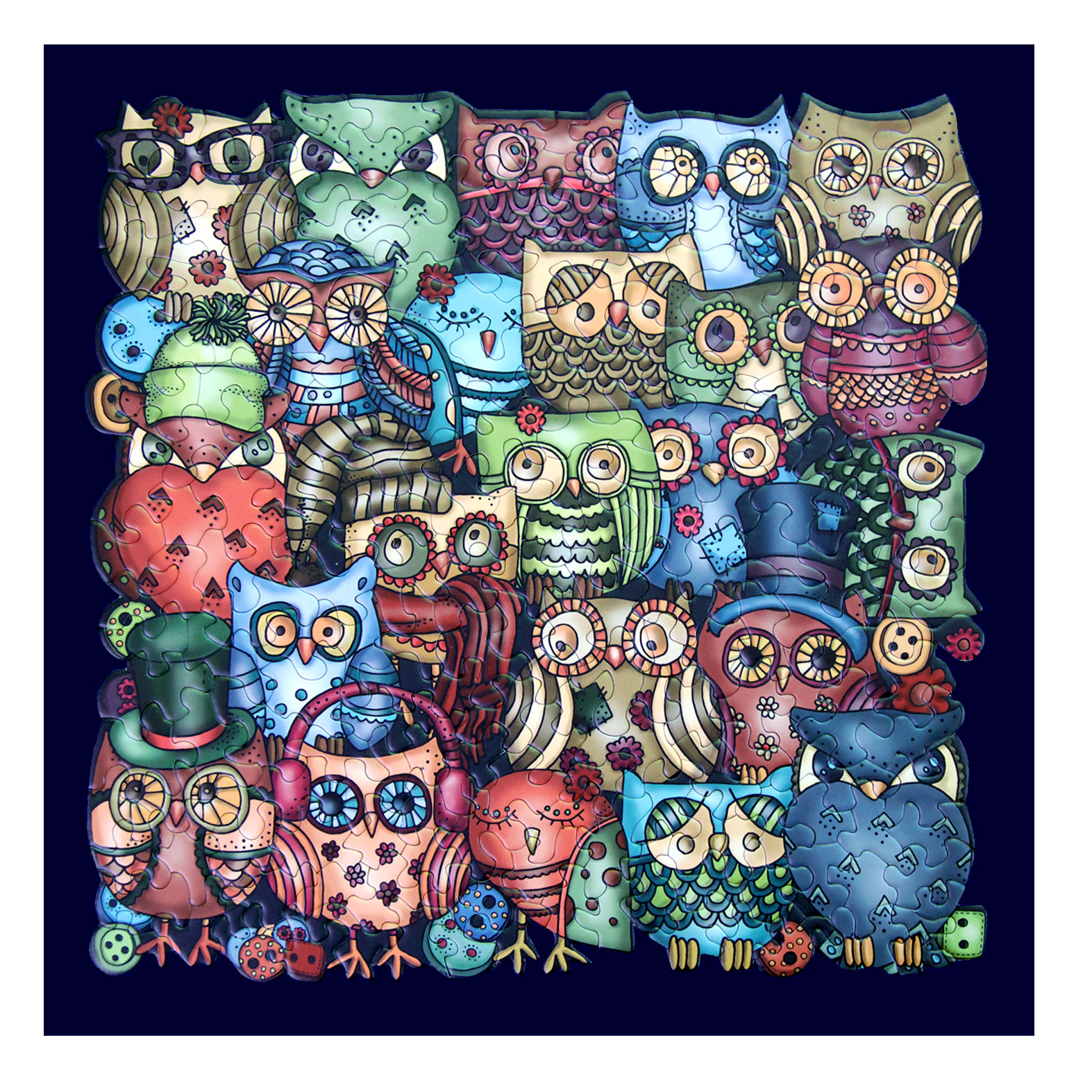 Palapeli Eulen - das besondere Rahmenpuzzle. Farbenfrohe Grafik, ungewöhnliche Puzzleteile ohne einfache gerade Randteile und ein wunderbares Puzzletablett zum Aufstellen oder Aufhängen des vollendeten Werks. Abgerundet durch die edle Stülpdeckelverpackung eine hochwertige Geschenkidee für Jung und Alt.