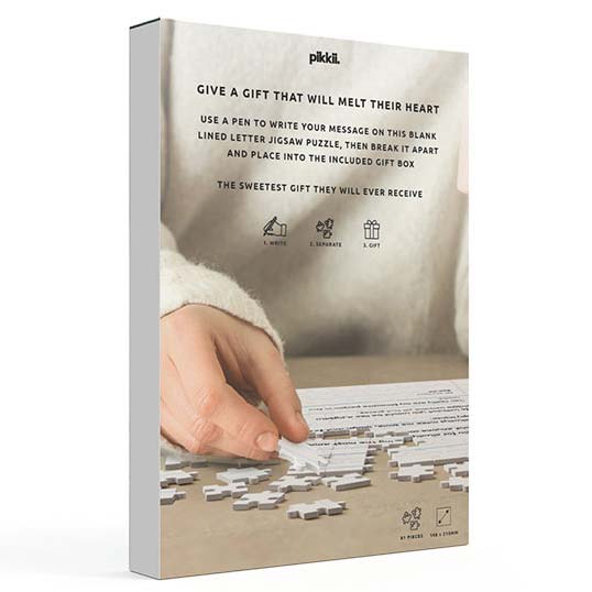 Schreibe einen persönlichen Brief oder male ein Bild für deine Liebsten. Puzzle Stück für Stück dein ganz persönliches Bild. Geschenkbox zum Verschenken des Puzzles an deine Liebsten inklusive.