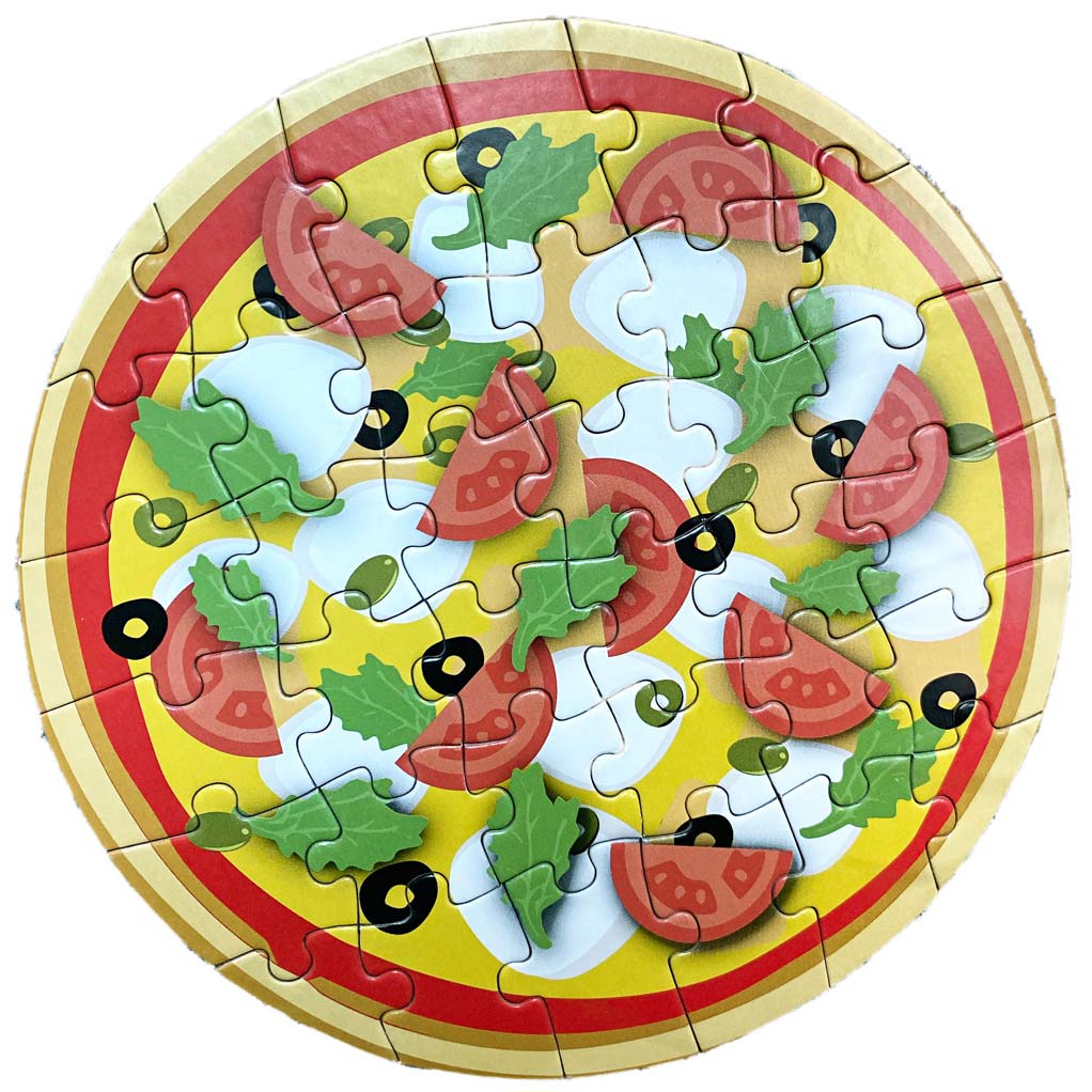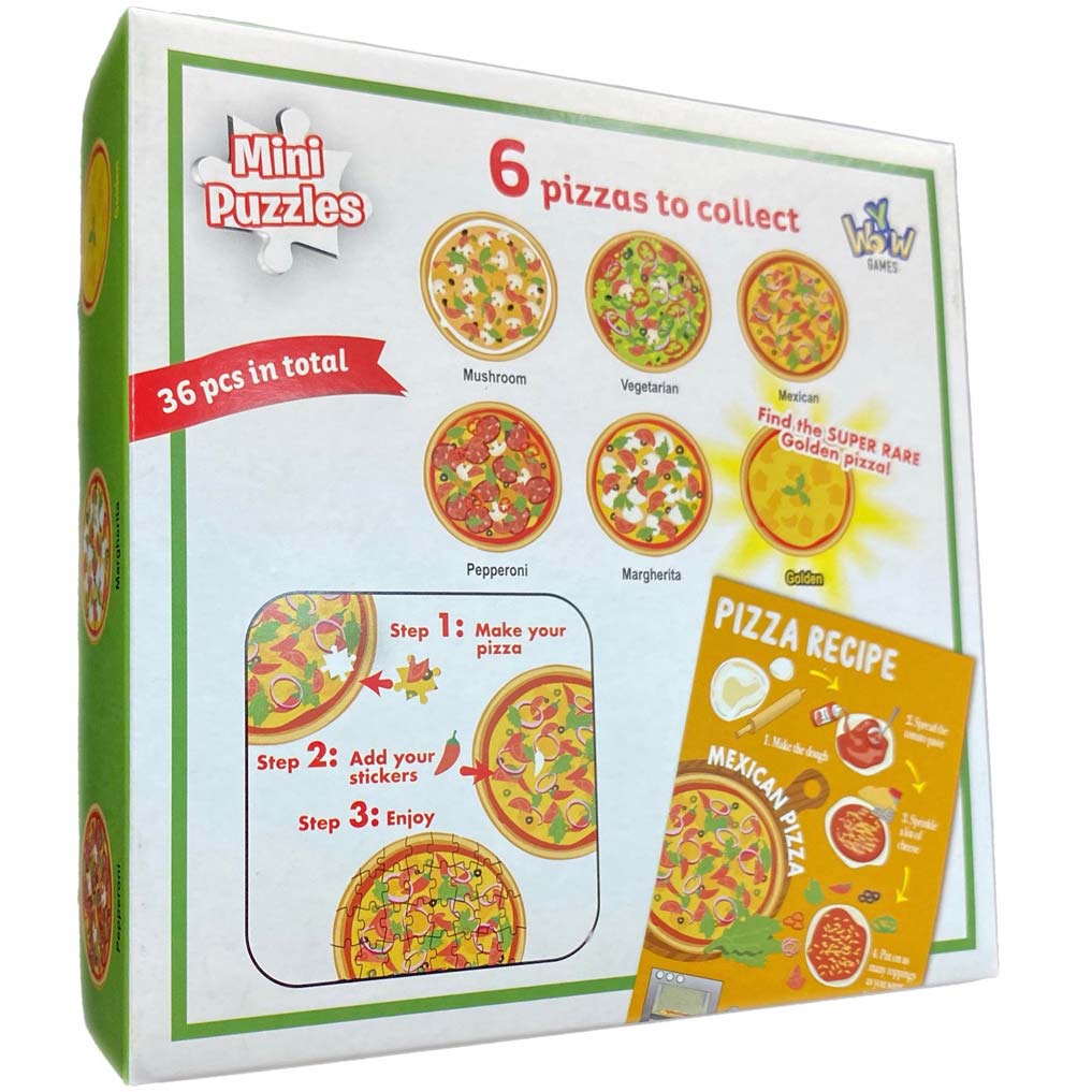 Mini-Puzzle im Pizza-Design: Sechs verschiedene Pizza-Motive zum Sammeln! Es gibt Mushroom, Vegetarian, Mexican, Pepperoni, Margherita und Golden, aber man erkennt von außen nicht, um welches Motiv es sich handelt. Sie bekommen eines der Motive per Zufall.