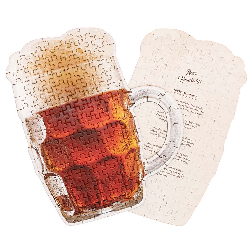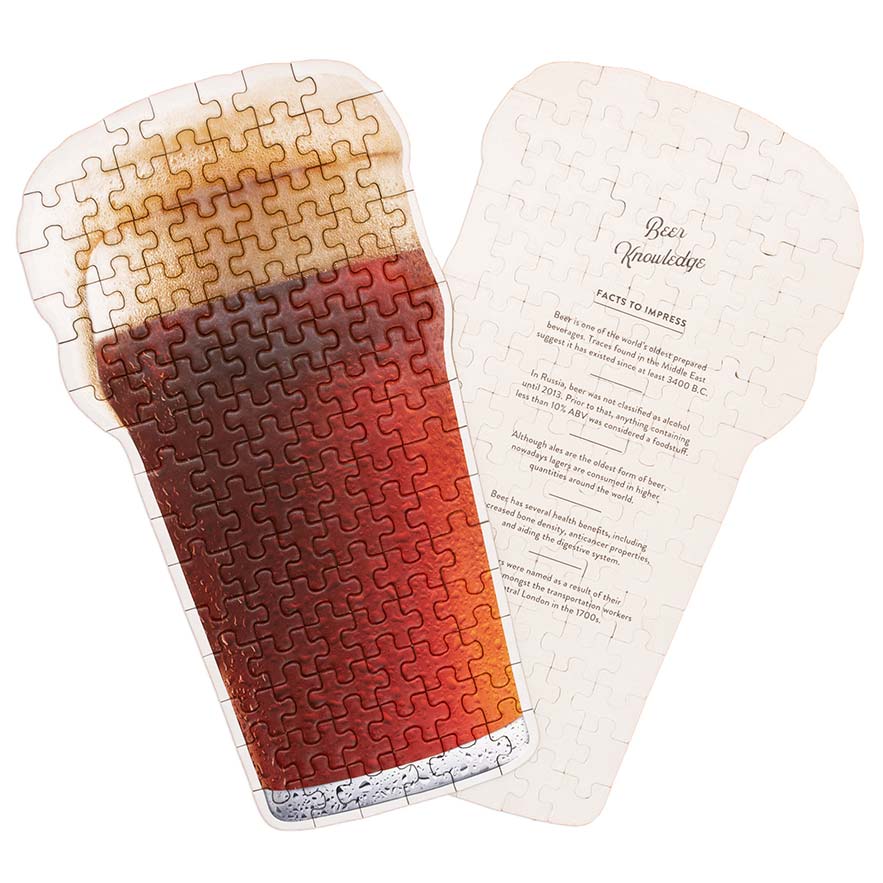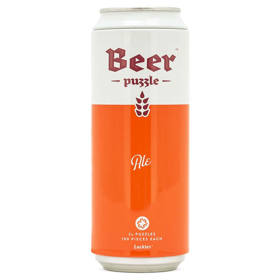 Das Bier Puzzle kommt in einer passenden Bierdose. Je Dose sind zwei verschiedene Puzzle enthalten, jedes der beiden Puzzle besteht aus 100 Teilen.