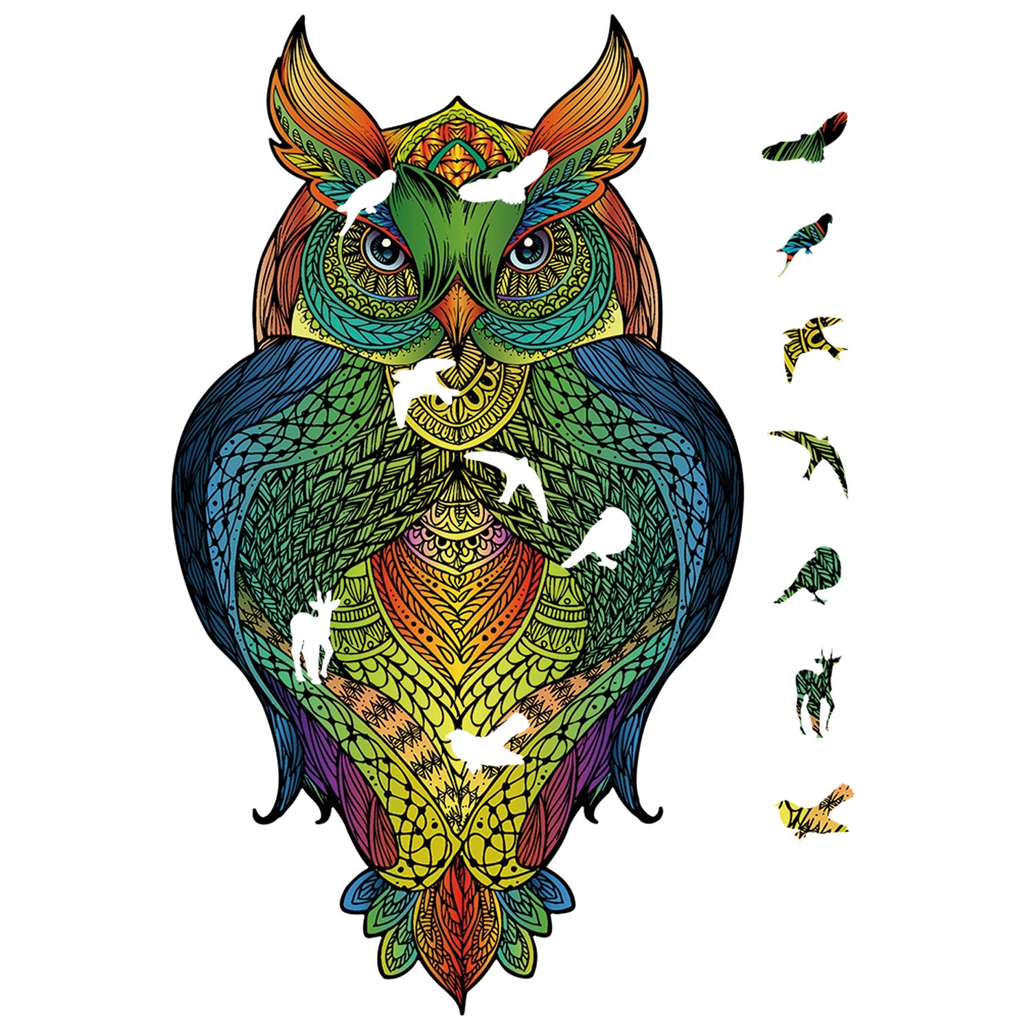 Das Rainbow Wooden Puzzle Owl ist ein 137-teiliges Puzzle mit außergewöhnlichen Puzzleteilen in Eulenform. Im Gegensatz zu normalen Puzzle stellen einige Puzzlteile z.B. andere kleine Tiere dar. Ein ganz besonderes Puzzleerlebnis!