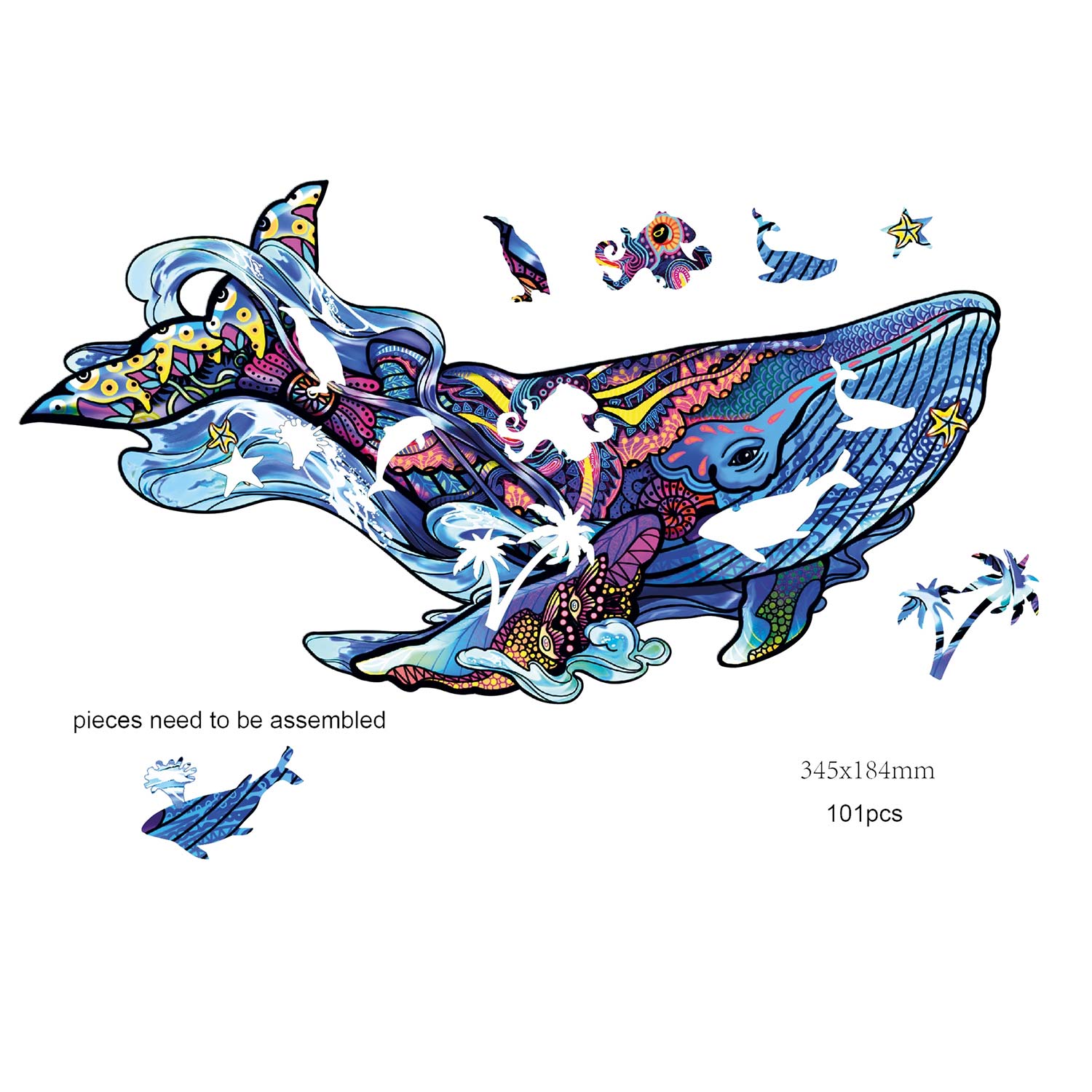 Das Rainbow Wooden Puzzle Blauwal ist ein 101-teiliges Puzzle mit außergewöhnlichen Puzzleteilen.Ein ganz besonderes Puzzleerlebnis!