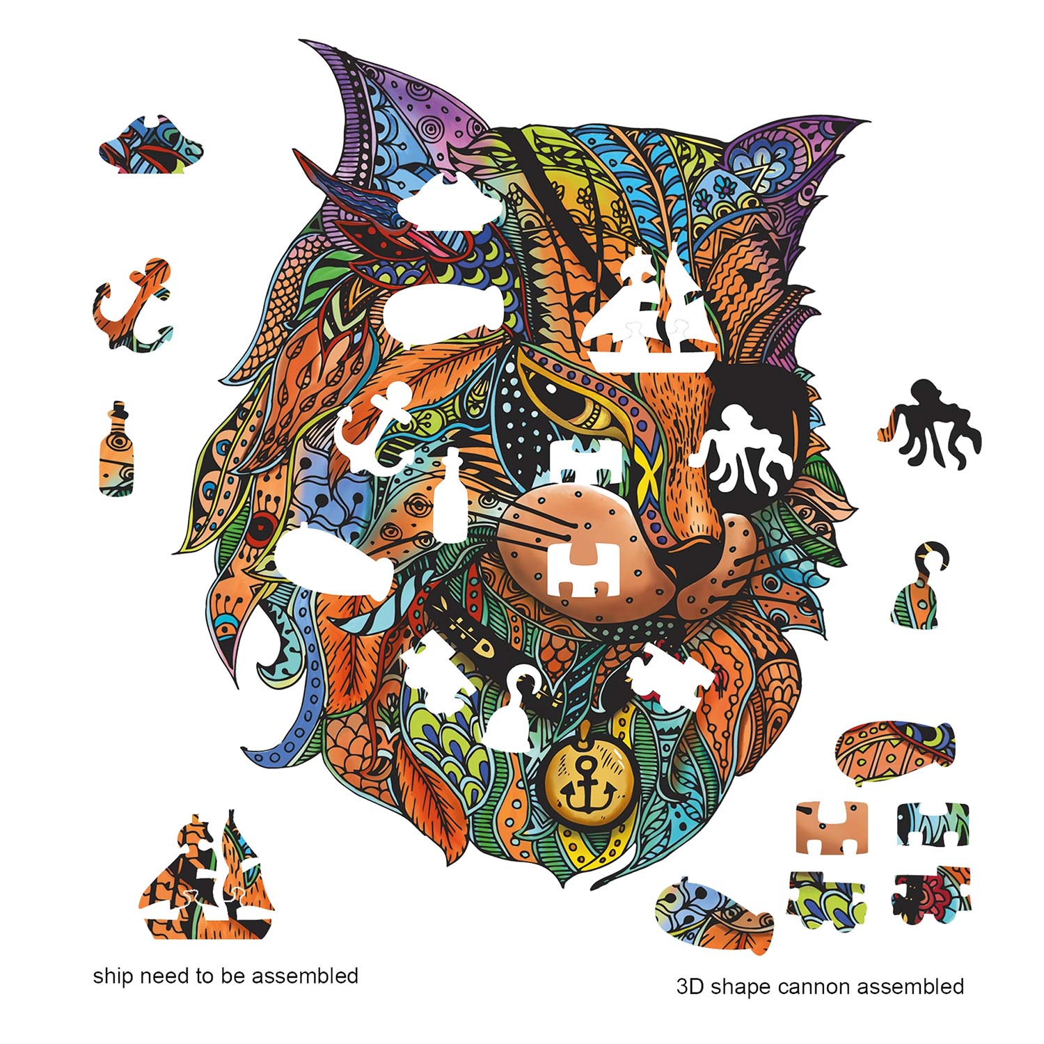 Rainbow Wooden Puzzle Pirate Cat (Piraten-Katze)