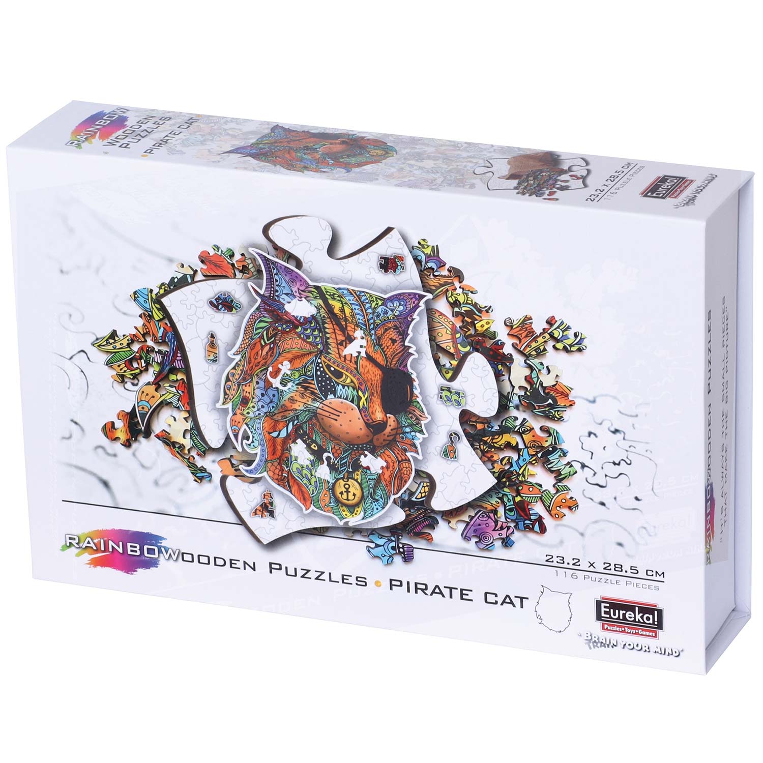 Das Rainbow Wooden Puzzle Piraten-Katze ist ein 116-teiliges Puzzle mit außergewöhnlichen Puzzleteilen.Ein ganz besonderes Puzzleerlebnis!
