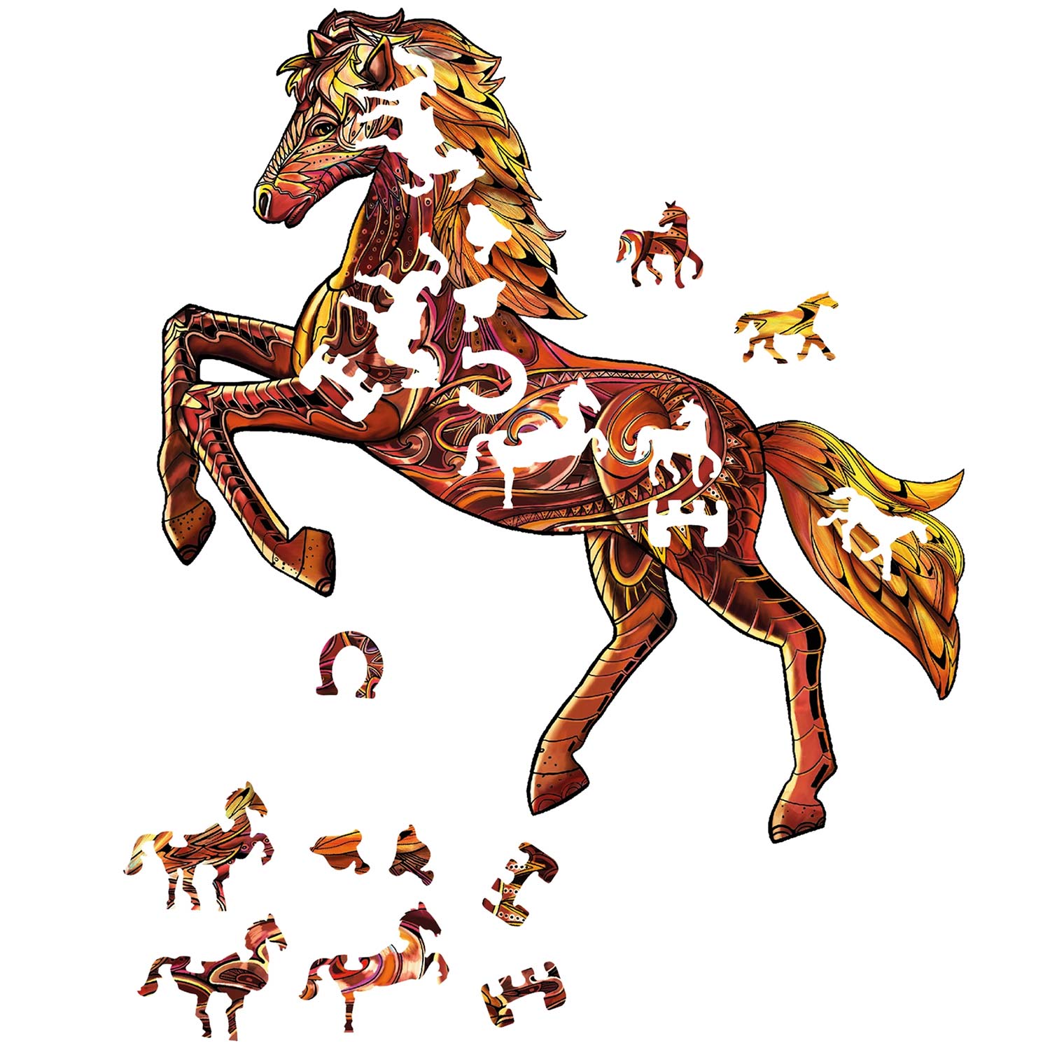 Das Rainbow Wooden Puzzle Wildpferd ist ein 103-teiliges Puzzle mit außergewöhnlichen Puzzleteilen.Ein ganz besonderes Puzzleerlebnis!