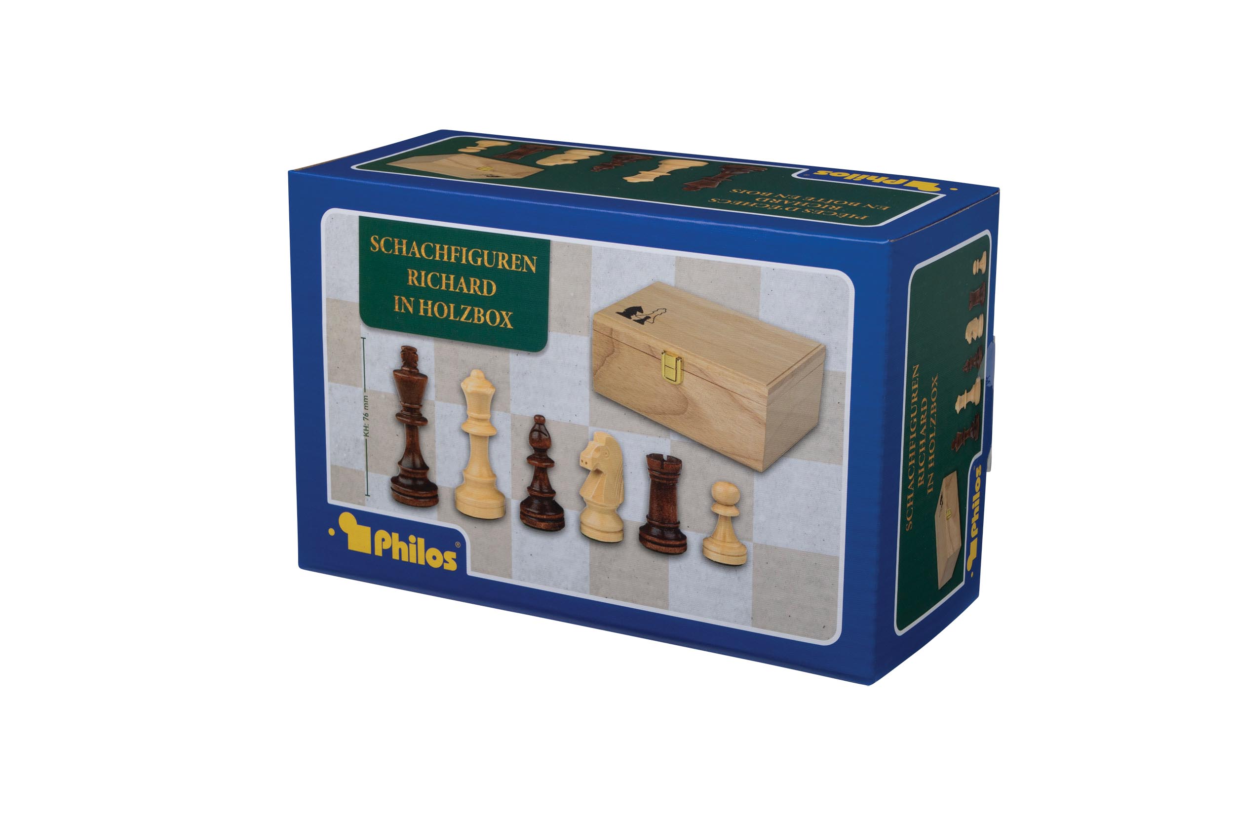 Schachfiguren Richard, Königshöhe 76 mm, in Holzbox