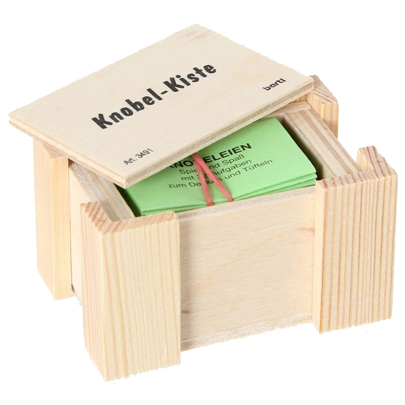 Die Knobel-Kiste enthält 22 Aufgaben jeden Schwierigkeitsgrades, die mit den ebenfalls enthaltenen 42 bunten Knobelstäbchen gelöst werden müssen. Inklusive Lösung.