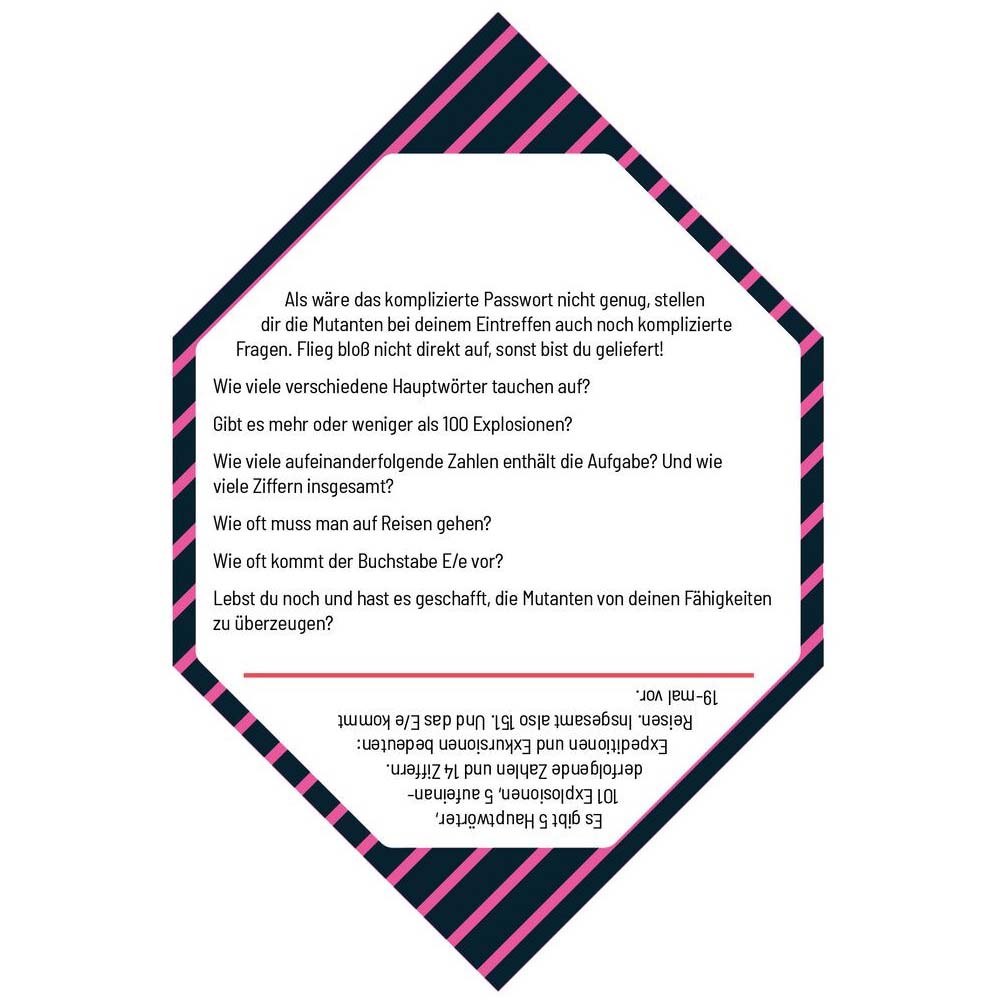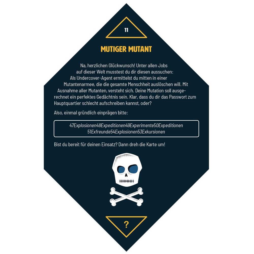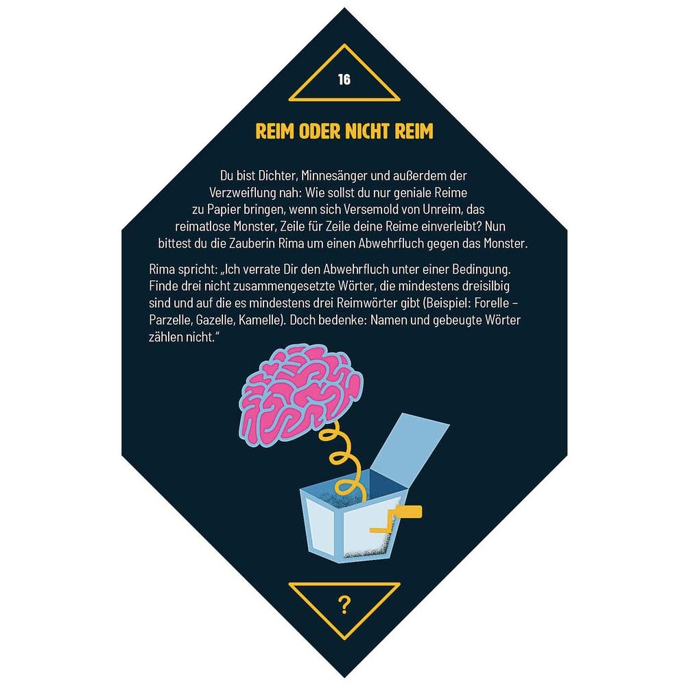 Hai-Alarm in Australien, ein sinkendes U-Boot oder eine geheime Dschungelmission diese Rätsel sind denkbar abenteuerlich und nichts für schwache Nerven. Jedes Scheitern kann böse Konsequenzen haben. Was tun, wenn ein Irrer, der sich selbst Professor Psycho nennt, Sie in einen Raum gesperrt hat? Außer Ihnen befindet sich dort nur noch eine Bombe, die droht in Kürze zu explodieren und einige weitere Gegenstände. Die einzige Chance zu entkommen, ist ein vierstelliger Zahlencode. Und das ist nur eins der gefährlichen Rätsel, die Sie erwarten. Klingt wie ein Escape-Game? Ist es auch! Die Rätsel sind mindestens so aufregend, aber nicht ganz so zeitintensiv wie ein ganzes Escape-Room-Spiel. Der perfekte Zeitvertreib also für alle, die gerade keine Zeit für ein ganzes Escape-Game haben.